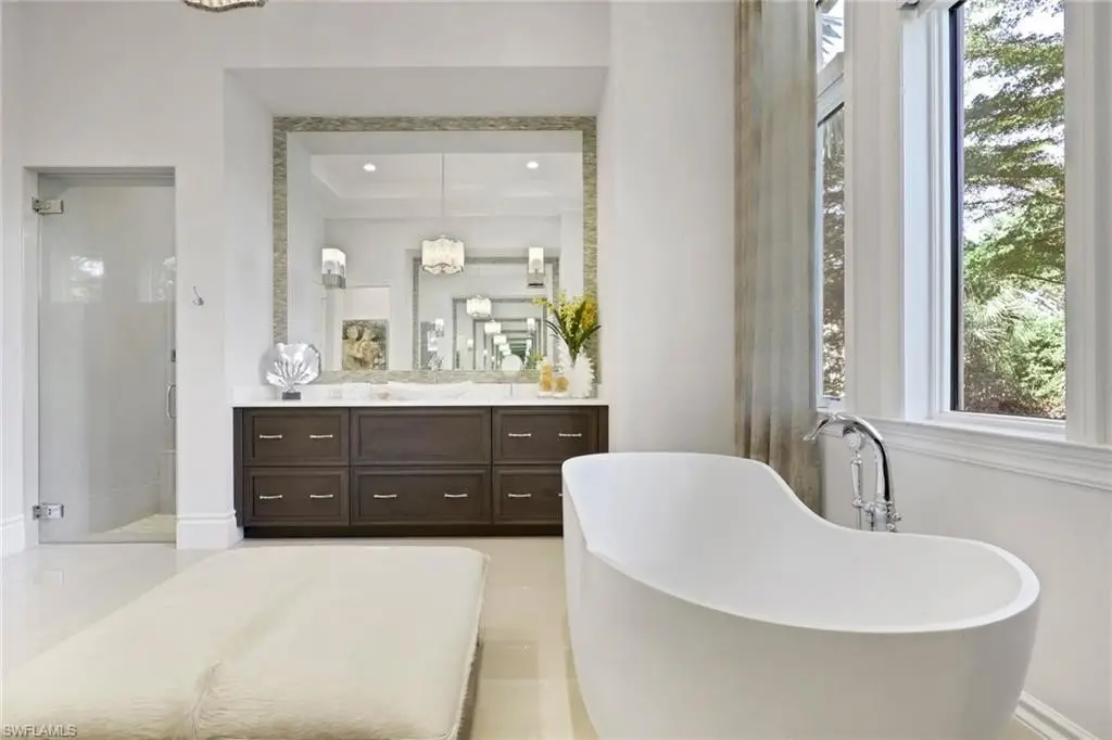 Welcome to a Signature luxury design, The "Atherton". From the moment you step inside, you'll notice the exceptional craftsmanship and meticulous attention to detail throughout. This newly updated and beautifully decorated and fully furnished residence is light and bright and designed for both comfort and style. The open concept floor plan features high vaulted ceilings and stunning private views. The home offers a split plan to 3 private guest ensuites and a 4th master bedroom with a striking island bathtub and large walk-in steam shower. Located in this almost 5000sqft estate is every amenity: a bar area, an open chef's kitchen with two large counter islands, a private dining area that seats up to 10, a home office, and an exercise room. This is a home that needs nothing! Leading from the living room with pocket sliders is a fantastic outdoor living space and a sun-drenched recrafted new pool and spa. This space has been well thought out and beautifully furnished to host all your family times and make gathering with friends effortless and entertaining! The outdoor fireplace and romantic pool fire feature allows for those cool Seasonal evenings when you just need to relax. This entire outdoor entertainment space includes auto screens and shutters. No options were spared in this former model including a whole home generator. The lush grounds of Quail West have made it the hidden gem of Southwest Florida for many years. 36-holes of golf designed by Arthur Hills. Amazing fitness Center, Salon, and exceptional private dining options make this home and private club a delicious opportunity. Golf Membership Available.