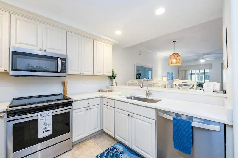 Where can you get a 3 bedroom turnkey furnished condo in the sought out Olde Naples vacation destination with resort style amenities and an onsite management company for this price!!!??? Bellasera Resort is where! This 1st floor 3 bedroom 2 bathroom coastal updated condo is located in downtown Old Naples, just two blocks north of Fifth Avenue. Bellasera is a boutique-style condo hotel that offers resort style amenities, including two popular downtown restaurants. Unlike most condos at Bellasera, this condo has no carpeting (all carpeting has been replaced with wood-like luxury vinyl flooring and the kitchen and baths have tile flooring. Freshly updated and being sold turnkey furnished for your convenience. As an owner, (not in the on-site rental program) you may occupy your unit up to 150 days per year and you can rent it out 12x a year with a 30 day minimum. If you opt to participate in the on-site rental program, Bellasera will rent it on your behalf with a 1 night minimum and a revenue share. This first floor end unit condo enjoys privacy, yet proximity to the concierge services, shuttle, Claw Bar and London Club restaurants, pool, spa, exercise facility and more. Walk out your back door to the pool and courtyard or out your front door to neighborhood restaurants (like Warren Naples). Your private screened in lanai, overlooks the beautifully landscaped courtyard area. This condo is walking distance to the beautiful Baker Park, Greenway walking trails, Gulfshore Playhouse, as well as Fifth Avenue's world renown shopping, dining and entertainment. This entire area has exploded with dining and activites. Bellasera owners and guests enjoy a shuttle service to the white sand beaches and downtown locations to enjoy dining, shopping, fun in the sun and water as well as the picturesque Naples sunsets. If interested in the rental program, please inquire with Listing Agent for details.