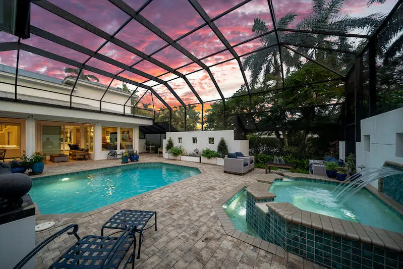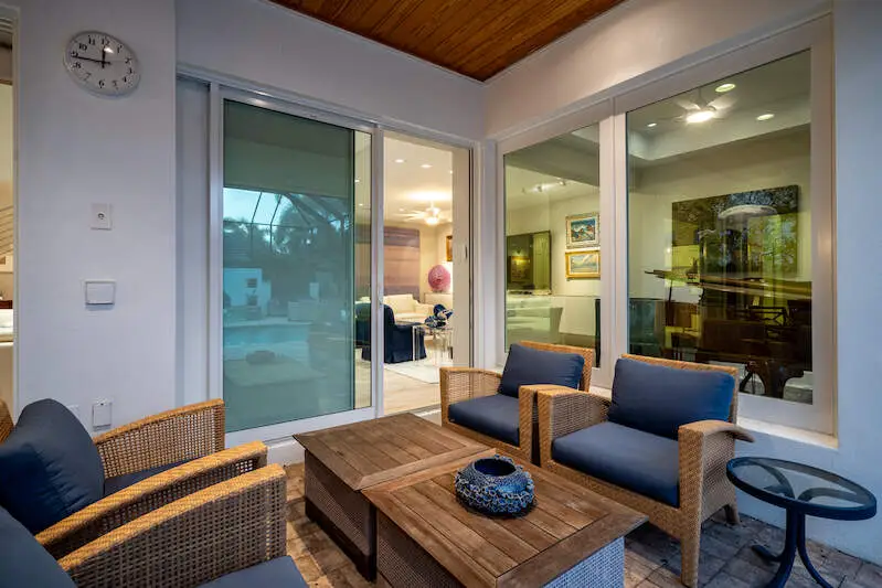 Covered lanai with electric rolling screens