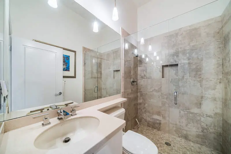 Spa-like bathroom with walk-through shower