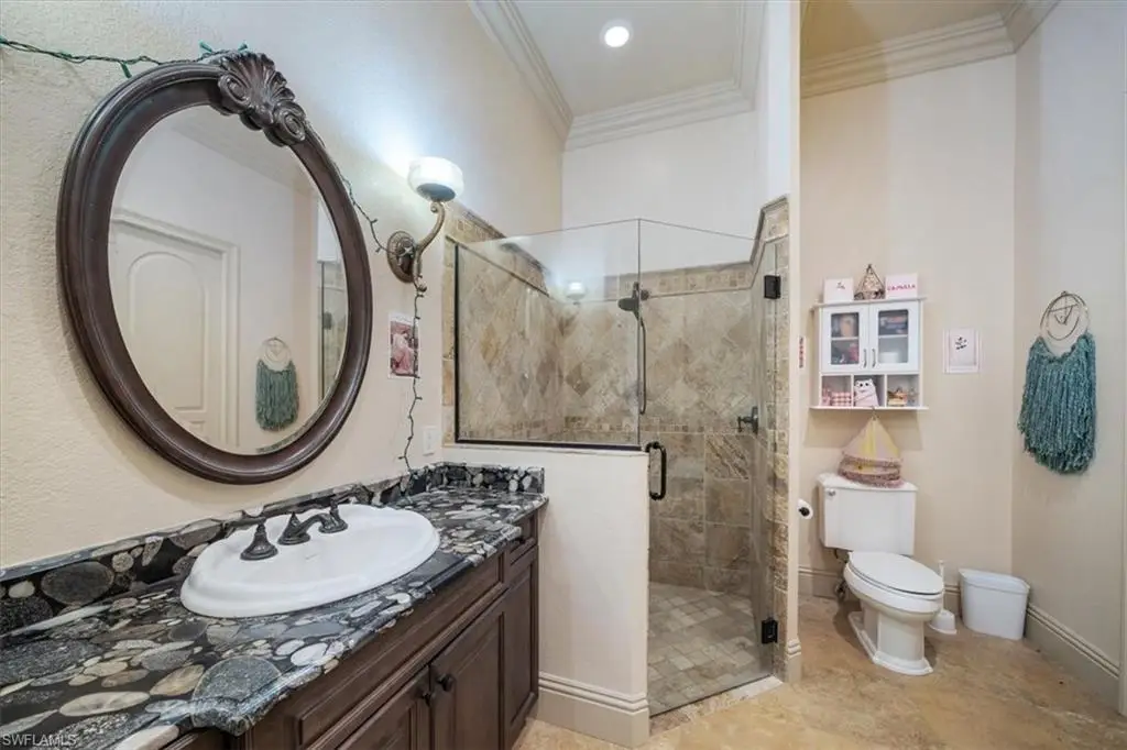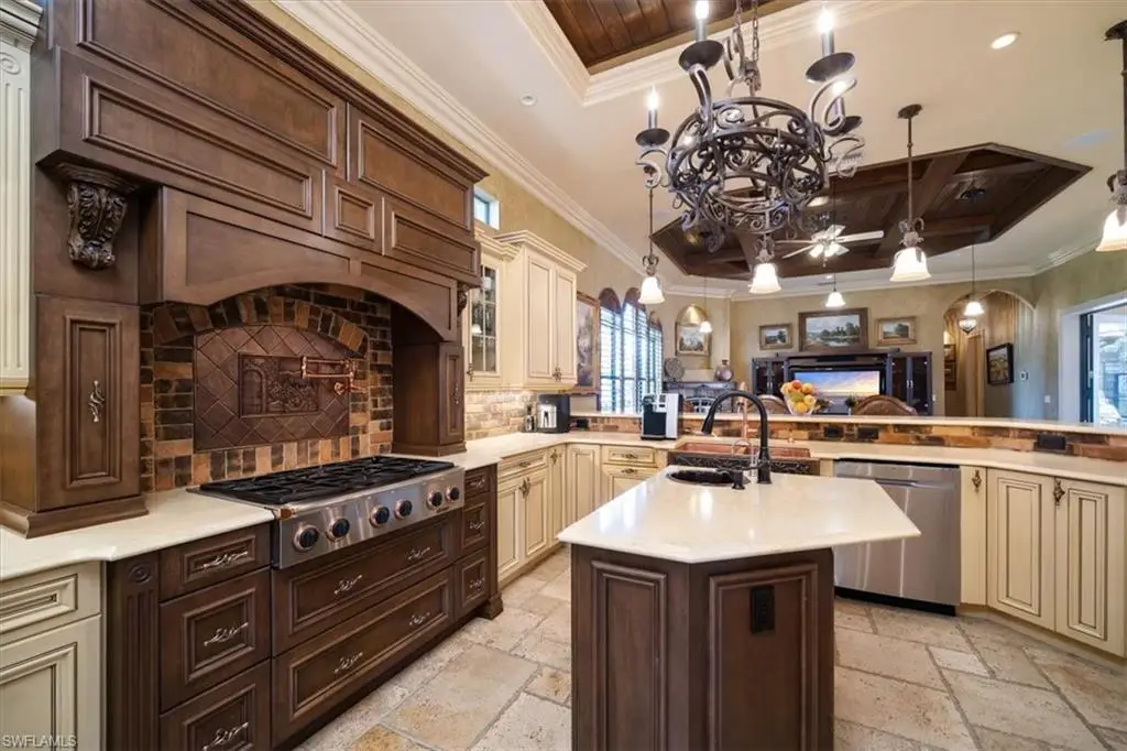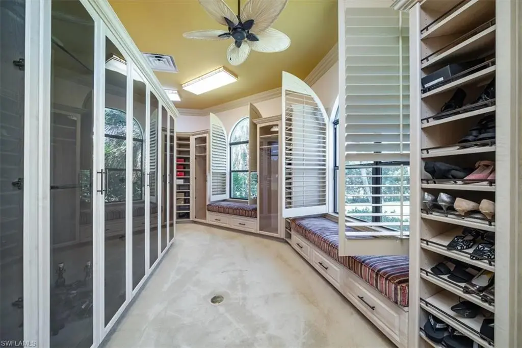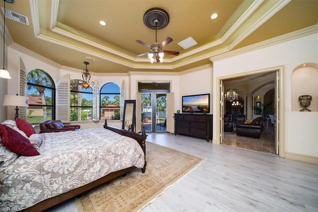 Experience luxury living in this spacious, beautifully appointed 7-bedroom home, designed with superior finishes and stately curb appeal. This exquisite 7,000 square foot property is part of a 2.5-acre fully-fenced gated family compound estate with manicured grounds, accessed via a double electric gated entry. The main house features a charming brick paver driveway, while a separate asphalt drive leads to a large 2,640 sq ft workshop/garage with RV-sized roll-up doors and climate-controlled spaces. This versatile area is perfect for a home-based business, RV, boat, or car collection. Enhancements to the estate include offices, guest suites, and a kitchenette, as well as a magnificent 1,000 sq ft primary bedroom closet with glass-enclosed sections, a cedar-lined room, and a fur vault/wine room. The primary suite also boasts a private spa with steam shower. The living space is enriched by a gas fireplace, and the kitchen is equipped with a six-burner Dacor gas stove and a dual-room pantry. The dining room features a wet bar, while an air conditioned gazebo with wet bar, sink and seating complements the pool and spa area, creating an ideal setting for entertaining. Additional amenities include a water treatment system in a 16x12 CBS building, Croci roll shutters, and generators for both the house and the workshop. This estate offers unparalleled luxury and functionality for discerning buyers.