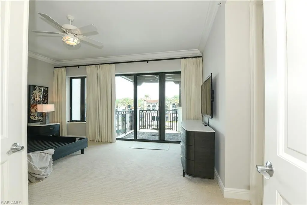 Indulge in the pinnacle of luxury waterfront living at Naples Bay Resort, where this exquisite 3-bedroom plus den, 4-bath condo offers an unparalleled blend of sophistication, comfort, and exclusivity. Perfectly positioned within one of Naples' most sought-after gated communities, this residence boasts breathtaking marina and water views from five private balconies, capturing the essence of resort-style living. Step inside to find an expansive, light-filled interior, meticulously designed with refined finishes and upscale details throughout. The open-concept living and dining areas are framed by floor-to-ceiling windows, allowing natural light to cascade across elegant flooring and custom millwork. The gourmet kitchen is a chef's dream, complete with top-of-the-line appliances, custom cabinetry, and sleek quartz countertops, making it both a functional workspace and a stylish focal point for entertaining. A private elevator leads to the luxurious primary suite, a serene retreat offering a spa-like en-suite bath, oversized walk-in closets, and a private balcony with tranquil water views - perfect for enjoying morning coffee or an evening sunset. The split floor plan ensures privacy for guests, with generously sized secondary bedrooms, each featuring en-suite baths and private balconies. The den provides an ideal space for a home office, media room, or exercise room, offering flexibility to suit your lifestyle. Beyond the impeccable interiors, this residence includes a spacious two-car garage, a rarity in resort living, and is offered partially furnished, allowing for an effortless transition into a luxury lifestyle. Ownership includes prestigious membership to the Naples Bay Club, providing access to a private members' club with world-class amenities and multiple dining options offering exquisite waterfront cuisine. Enjoy the state-of-the-art tennis facility with an on-site pro and Har-Tru tennis courts, five resort-style pools and a lazy river, and on-site boat rentals with direct access to the Gulf of Mexico. All of this is set just moments from Fifth Avenue South's premier shopping, fine dining, and entertainment, as well as Naples' stunning white-sand beaches. Offering the perfect balance of luxury, privacy, and breathtaking views, this rare waterfront retreat is an opportunity not to be missed.