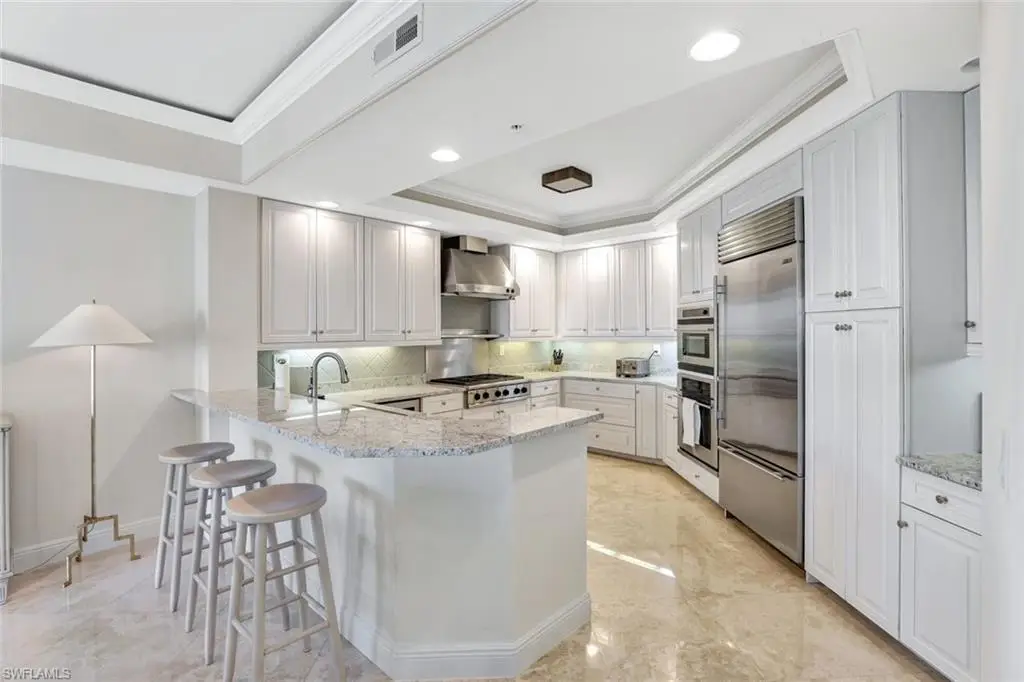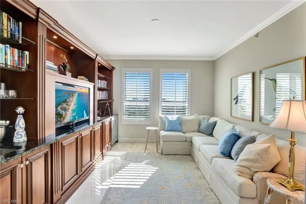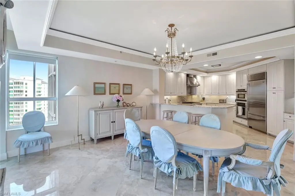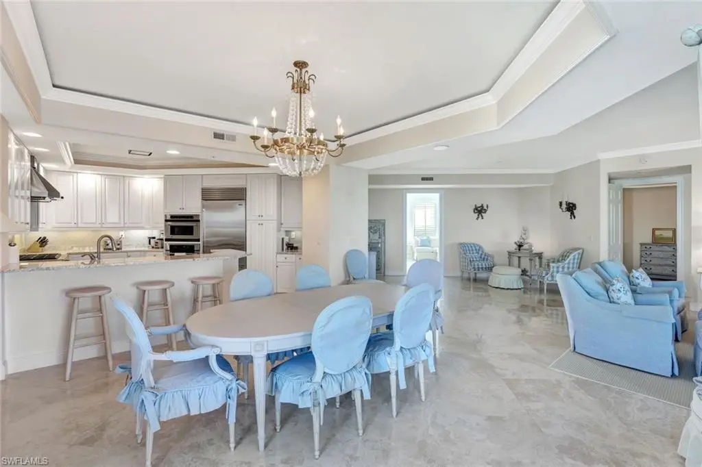 Step into elegance and comfort with this exquisite residence at The Dunes, offering unparalleled luxury and breathtaking views. Enter directly into your unit via a private elevator, where you're greeted by stunning polished marble flooring that sets the tone for sophisticated living. The gourmet kitchen, adorned with light granite countertops, opens seamlessly to a spacious dining area and an expansive great room, creating the perfect setting for entertaining. Boasting 3 bedrooms, 3.5 baths, and a versatile den, this home features a large open floor plan designed to capture natural light and maximize space. The wraparound lanai is a true highlight, offering sweeping views of the Gulf of Mexico and Turkey Bay. From here, enjoy serene moments watching boats glide by and wildlife in their natural habitat. The primary suite is a luxurious retreat with a separate shower, jetted tub, and dual sinks. A second primary suite with its own private balcony provides additional comfort and privacy for guests or family. This residence includes two under-building parking spaces and is located in the prestigious Grande Excelsior building, which offers an array of amenities, including a fitness center, a gas grill area, and a pool with a hot tub. As a resident of The Dunes, you'll also enjoy access to the renowned CLUB AT THE DUNES, featuring a resort-style pool, TIKI bar, and casual and formal dining options. Socialize at the popular Sandbar or take advantage of top-tier fitness facilities with on-site trainers. The community also boasts a full-time tennis staff and an active tennis community. Available for transfer with this unit is the highly sought-after FLORIDIAN CLUB membership, granting exclusive access to a private beach club on award-winning Vanderbilt Beach. The Floridian shuttle conveniently picks you up at your lobby and whisks you away to the beach, where you can enjoy a restaurant, pool, indoor-outdoor seating, and full beach services. The Dunes is PET FRIENDLY, making this a rare gem in Naples condo living. Live the luxury lifestyle with unparalleled amenities in a vibrant, resort-style community. Call for a private showing today!