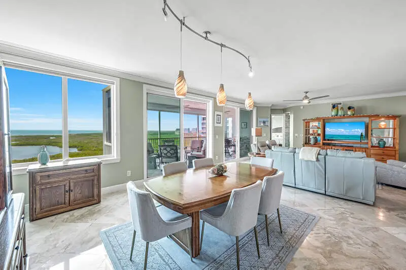 Rarely available 03 residence located in the Grande Phoenician. This luxurious sky home comes with a private Cabana. Enjoy the serene views of Turkey Bay, The Gulf and stunning sunsets. This spacious residence is in a gated tower with luxurious amenities and walking distance to one of Southwest Florida's most stunning beaches. Complete with ceiling heights of over 9 feet, a gourmet kitchen featuring a gas cooktop, quartz countertops, decorative stainless -steel side-by-side refrigerator, an under counter wine cooler, a large primary suite and a guest primary with an ensuite. The elevator opens directly into your spacious foyer. According to the developer brochure, all external windows comply with FLA 2002 impact-resistance requirements. This condominium does have the ability to have the Floridian Beach Club Membership. A shuttle service provides shuttle service to and from The Floridian Beach Club located on Vanderbilt Beach. The Dunes is a Premier Gated Coastal community managed by Troon that includes a tennis pro shop and lit tennis courts, pickleball, a state-of-the-art fitness center, food and beverage service around the resort-style pool, indoor and outdoor dining, tiki bar, and so much more.