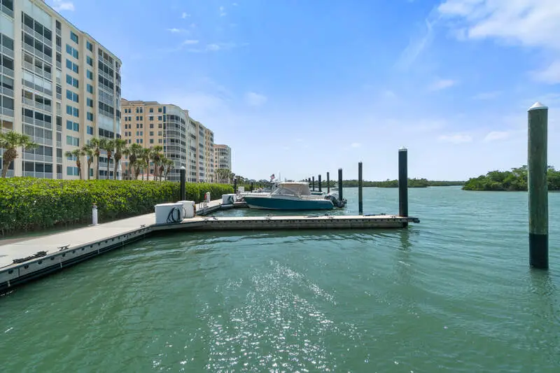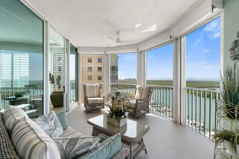 Beautifully remodeled coastal contemporary 9th floor END-UNIT offering spectacular views of the Bay and Gulf, located in the highly sought-after Pelican Isle. Indulge in breathtaking sunsets from the comfort of your spacious waterfront lanai. This property is a true paradise for beach and boating enthusiasts, situated on Wiggins Pass with direct Gulf-access and no bridges. Pelican Isle provides boat slips and lifts for vessels up to 55 feet, as well as a convenient beach shuttle for easy access to the shore (multiple slips currently available!) This unit has been meticulously upgraded with hurricane impact windows, electric hurricane shutters, new HVACs (2018), new water heater (2017), Sonos sound system, water wood and tile flooring, and a light and bright interior. Enjoy extraordinary natural light courtesy of the extra windows, only available in a rare end-unit. This exquisite residence features 2,866 square feet of living space, including an open-concept floor plan, 3 spacious bedrooms, a den, 3.5 bathrooms, and a beautifully remodeled kitchen. The chef's kitchen boasts white quartz waterfall countertops, light cabinetry, Everpure water filtration system, and high-end appliances including a Sub-Zero refrigerator, Wolf wall oven, steam oven and induction cooktop, and Bosch dishwasher. The spacious primary suite offers mesmerizing water views and a spa-like bathroom with dual vanities, a large walk-in shower, and a separate jetted soaking tub. Relax and unwind on your screened-in lanai, where you can enjoy the natural beauty of Southwest Florida, from the diverse wildlife to the dolphins and manatees gliding through the bay. Pelican Isle has a separate private Yacht Club membership available, ranked as one of the Top 50 Platinum Yacht Clubs in the world, granting access to endless boating opportunities, fine dining, fitness facilities, social activities, tennis, pickleball, and bocce courts. Residents also enjoy two pools with spas, a bike storage area, air-conditioned personal storage units, and secure, gated entry with 24/7 camera surveillance. The condo comes with assigned covered parking, guest parking, and a car wash area, as well as a newly renovated lobby and hallways. Located just minutes from Southwest Florida's finest beaches-Vanderbilt Beach and Barefoot Beach-as well as premier shopping and dining at Mercato, Waterside Shops, and Naples' iconic 5th Avenue, this residence offers easy access to both RSW and Naples airports.