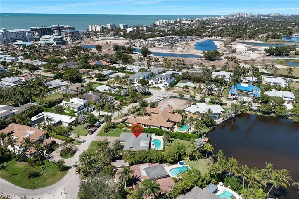 Wonderful Ridge Lake neighborhood, vintage but well maintained "Michigan" home. Lovely lakefront property with the home being offered As-Is. Idyllic location to build your dream home just a stones throw to the Gulf, parks, Old and Central Naples shopping and dining. The property is surrounded by established privacy landscaping with natural lake views. Lot is 200' in depth, with .33 acres. Ridge Lake is an exceptional neighborhood with a charming combination of older renovated homes to new fabulous estates. Not a through street. Current home is at 10.06' and the garage is at 9.20 feet.