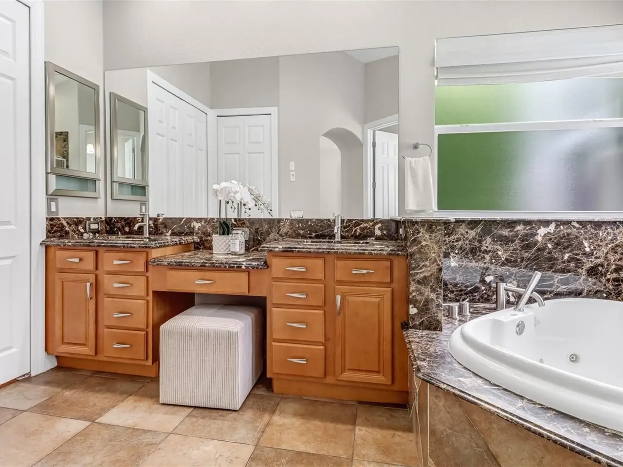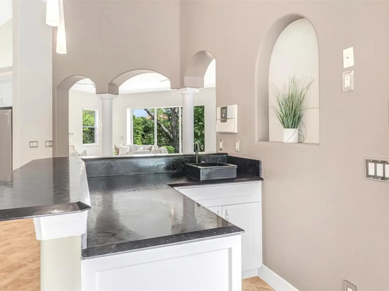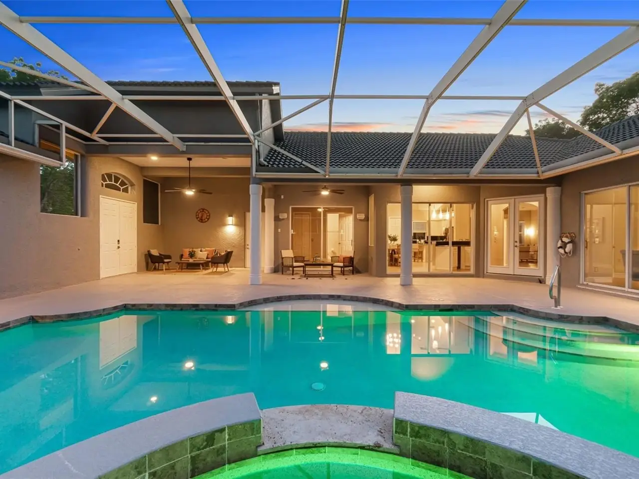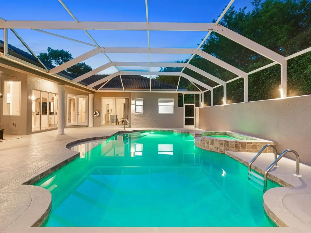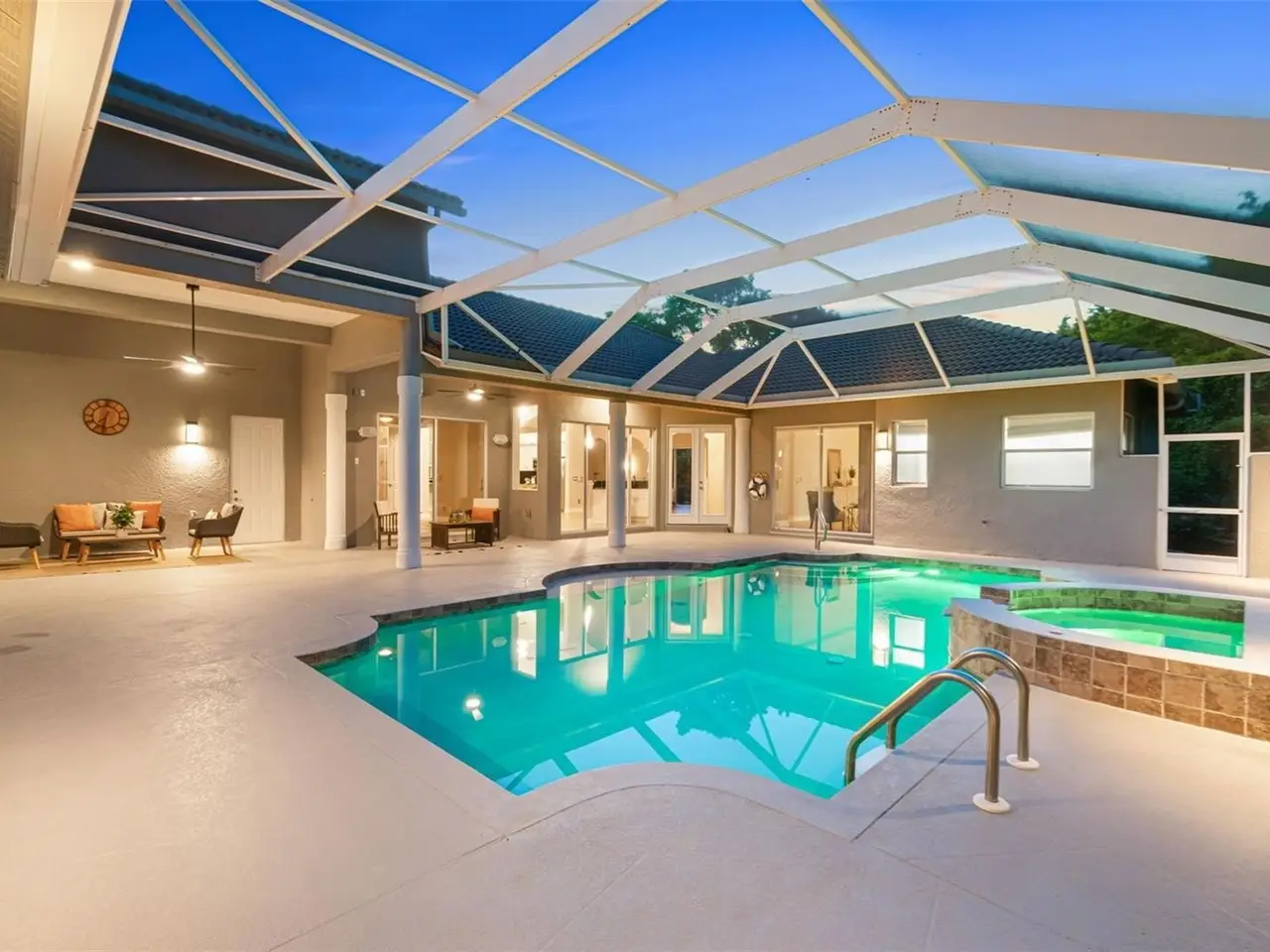 Luxurious Home in the Sought-After Wilshire Lakes Gated Community. Welcome to your dream home in the desirable Wilshire Lakes community. This exquisite property invites you into a stunning courtyard, accessible from various rooms throughout the home. The courtyard features a serene, lighted and heated pool/spa with a cascading waterfall, perfect for relaxation and self-care. Ideal for entertaining family and guests, this private oasis is enclosed by a screened courtyard offering both sun and shaded areas. The pool has new heating, filtration, lighting and fans for ambience, this courtyard/lanai ensures year-round enjoyment. This contemporary design includes four spacious bedrooms and 3.5 baths that has been meticulously maintained highlighted by an extra-large open kitchen with high vaulted ceilings, new cabinetry that boast rare Brazilian granite countertops with an extra-long beveled edge, stunning hardware and light fixtures, a wet bar on a diagonal for great conversations adjacent to the dinette area. The kitchen features appliances, including a pot-filling tap over the stove/oven, microwave, and refrigerator and a new dishwasher. Plenty of cabinet space with a pantry and built in desk area. This home was built in 2005 there are extra windows to bring in the bright natural light along with the appealing views. French doors off lanai that is easily accessible for a pool lavatory that has decorative art tiles and a pedestal sink. Walk through the grand pillars with vaulted ceilings and you will enter the living room, offering a relaxing retreat with privacy bushes and a view of the backyard lake. The primary bedroom is a sanctuary with an ensuite bath featuring a tile shower, spa tub, large walk-in closet, linen closet, dual sinks, vanity and provides a private water closet. Additionally, it has sliding doors leading to the courtyard along with a private side porch/dog run. A spacious laundry room with granite countertops, plenty of cabinetry, a washer/dryer, and a utility sink. That leads to the two-car garage, includes hurricane shutters and attic access. The courtyard includes a separate guest In-law suite/Cabana with a detached private entrance, kitchenette (stove, refrigerator, cabinets, sink), full bathroom, closet, and separate air conditioning. The traditional Florida exterior that has been completely painted, professionally landscaped along with landscaping lights, new sod in the front and the side yard, new roof in 2019. Situated on a private street corner, this home offers low HOA fees with great amenities and access to “A” rated schools. It’s conveniently located near North Naples shopping, dining, parks, and the beautiful Gulf beaches. Don’t miss the opportunity to own this stunning property in Wilshire Lakes. Schedule a tour today and experience luxury living at its finest!