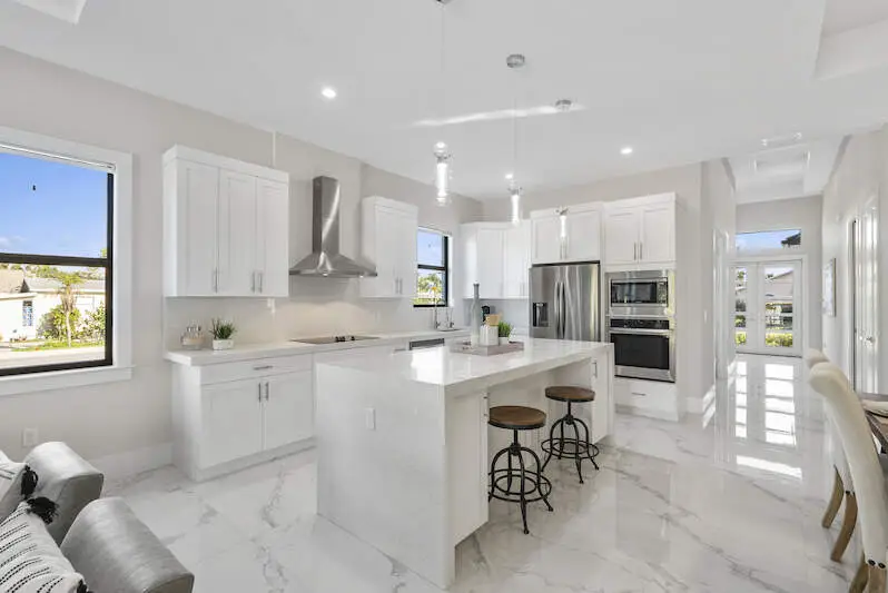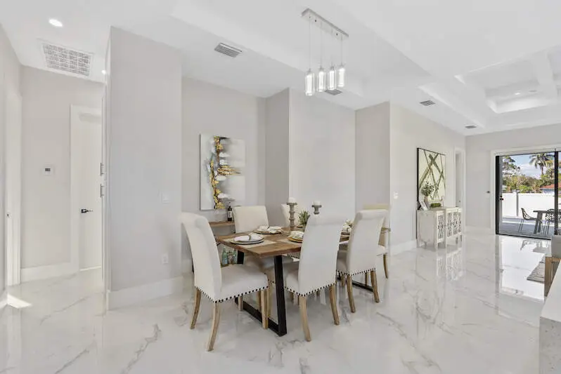Minutes to Vanderbilt Beach and the Ritz Carlton, welcome to 799 108th Ave N, a stunning home in the highly sought-after Naples Park, ideal for full-time living, a vacation retreat, or a lucrative investment property like Airbnb. This 4-bedroom, 3-bathroom pool home offers a fantastic combination of luxury and convenience. Professionally furnished, this modern gem features an open-concept floor plan with high ceilings, crown molding, and a sleek tile roof. The gourmet kitchen boasts 42" white wood cabinets, a large dine-at island with Quartz countertops, stainless steel appliances, and a hooded range that flows seamlessly into the spacious living area with coffered tray ceilings and large paneled sliding doors. Step outside to enjoy the expansive lanai, complete with an outdoor kitchen and built-in BBQ, perfect for entertaining. The private, fenced-in pool adds a touch of relaxation. The primary suite is a true retreat, with a walk-in shower, freestanding soaking tub, dual vanity, and a generous walk-in closet with an organizing system. Just 5 minutes from Naples' stunning beaches, Mercato shopping and dining, and the newly updated Pavilion shopping center, you can easily drive, walk, or bike to all the best local attractions. Don't miss the opportunity to own this incredible property in one of Naples' most desirable neighborhoods!