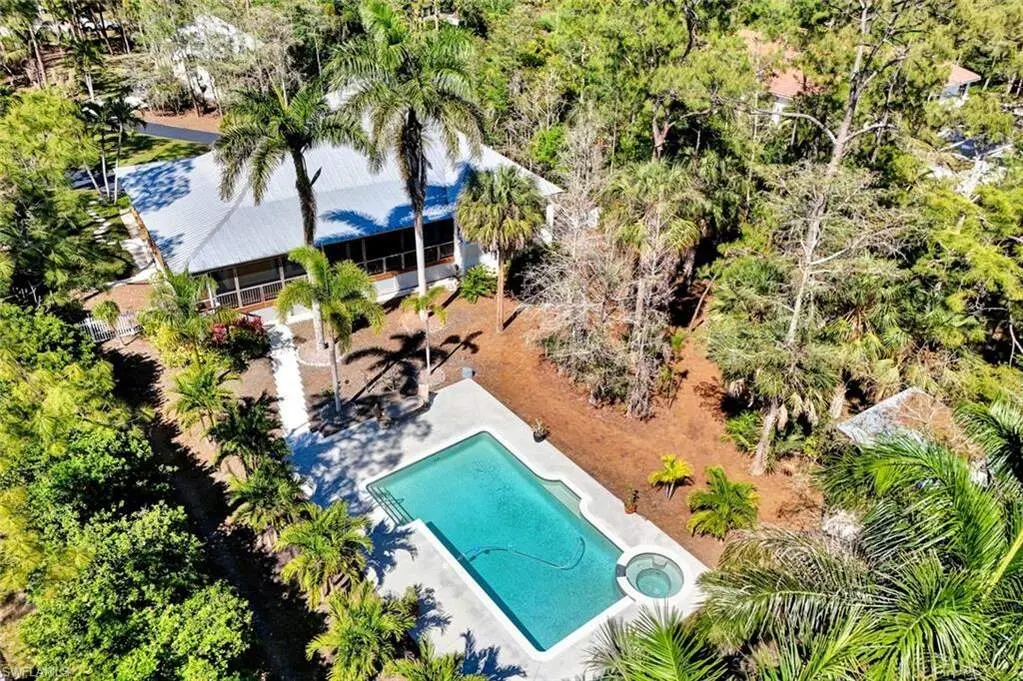 Discover a masterfully crafted Florida Vernacular estate in the heart of Oakes Estates, Naples, FL, where expert craftsmanship meets timeless design. This stunning property offers a main house, guest house, and expansive outdoor spaces, all designed with quality and longevity in mind. The main home features 3 bedrooms plus a den. Soaring 10-ft ceilings and 8-ft doors throughout create an open and airy feel, while prairie-style windows enhance its architectural charm. The interior showcases custom, locally crafted solid rock maple cabinetry and unstained white oak flooring, adding warmth and character to the home. The primary suite boasts a one-piece marble shower and a custom walk-in closet. Functionality meets convenience with a whole-house reverse osmosis system, a new exterior and interior paint job, and masonry construction. The home is designed with no interior load-bearing walls, allowing for a flexible floor plan for potential future updates. Extra-deep garages provide ample storage, and the property includes an air-conditioned shed. Additional features include a central vacuum system with a new motor, copper plumbing, a newer water heater, and a 5-ton AC. The guest house, built in 2006, offers 1,100 sq. ft. under air with 2 bedrooms and 1.5 baths. It features polished concrete floors, impact-resistant PGT windows, and high-end finishes, including granite countertops and luxury German cabinetry. Stainless steel appliances complete the modern kitchen, making it a perfect retreat for guests or extended family. Outdoor living is a dream with a 3/4 wraparound porch that exudes Florida Vernacular charm. The property includes a gunite pool with a new filter recently installed. A tranquil canal in the backyard provides a perfect spot for fishing, with large-mouth bass, peacock bass, snook, and gar frequently found in the waters. Situated in Zone X, flood insurance is not required. The home sits 50 inches above the crown of the road, ensuring an elevated and secure foundation. This estate seamlessly blends luxury, durability, and thoughtful design, creating a home that is as functional as it is beautiful. Enjoy the serene, private setting of Oakes Estates while being just minutes from Naples' world-class dining, shopping, and beaches. Schedule a private showing today and experience this one-of-a-kind property for yourself!