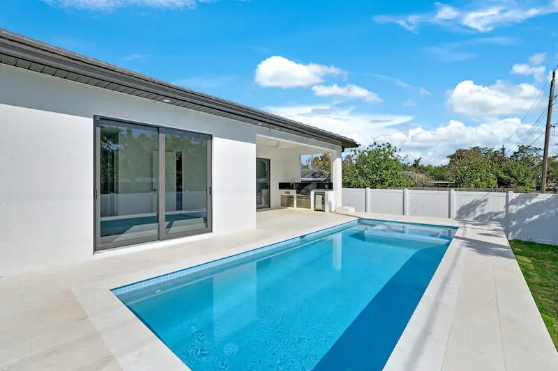 New construction in unbeatable location across from Park Shore. Ride your bike to the beach! This is an upcoming street with seven new construction homes under construction. Good investment opportunity. The home features high ceilings throughout. Modern kitchen cabinets and plank style porcelain tiles. The den is flexible and allows an opportunity for a fourth bedroom. The master suite offers a very large shower with tub. Excellent outdoor area with a salted and heated pool and spa and outdoor kitchen!