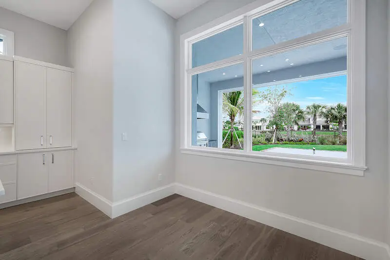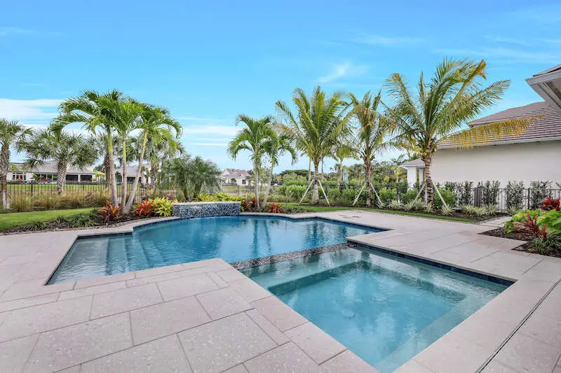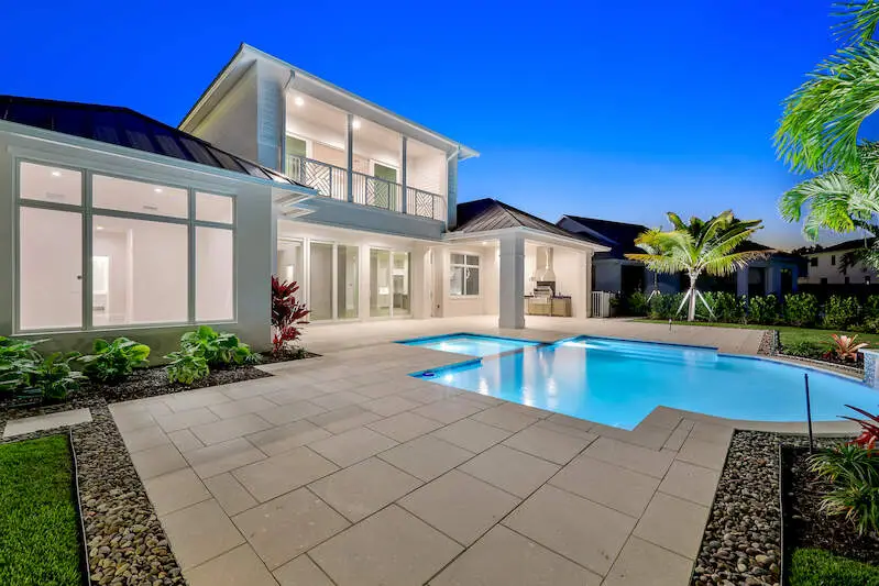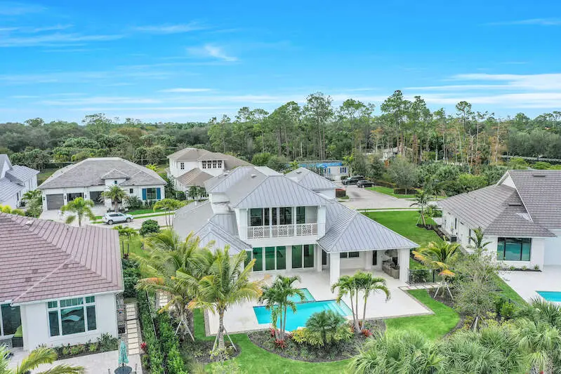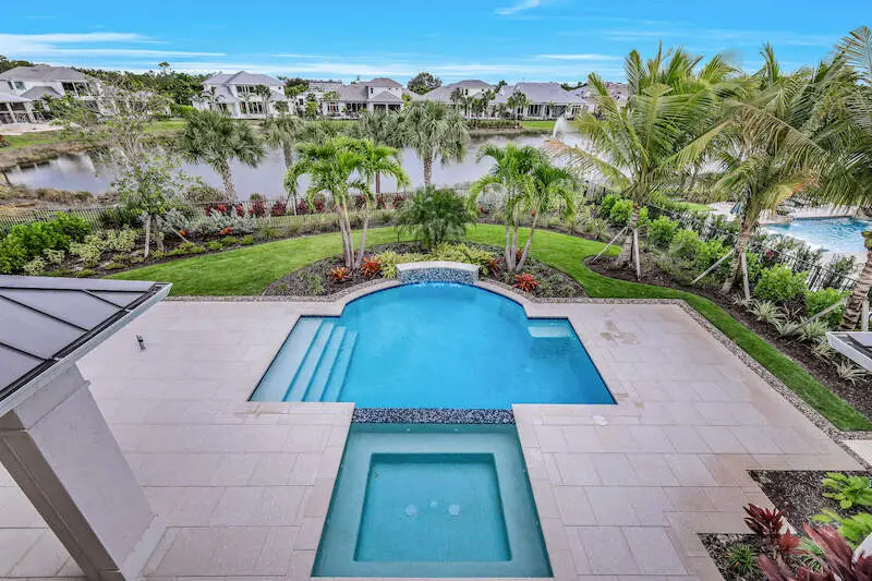 New construction, completed November 2023. The oasis is a four bedroom, den, and loft home with four bathrooms plus two half-baths. Built by Distinctive Communities in the gated North Naples community of The Enclave of Distinction. A private boutique neighborhood of 27 homes, the Oasis is situated on a beautiful SE homesite with a water view. This 4,869 square foot home boasts views as soon as you walk through the front door, through the living room, to the resort-style pool with an outdoor cook center and fire pit. The gourmet-inspired kitchen features Viking appliances, custom wood cabinetry, and Pompeii quartz countertops. It flows into the family room, accented with a gas fireplace. The main suite on the first floor features volume ceilings, a private sitting area, a luxurious bathroom with a freestanding soaking tub, a walk-in shower, dual vanities, and two oversized walk-in closets. Also located on the first floor is a den, en-suite guest bedroom, formal dining room, and butlers pantry. The second floor includes two on-suite guest rooms and a lounge/media room with an open balcony—minutes to shopping, gulf beaches, Mercato, SW FL International Airport, and fine dining.