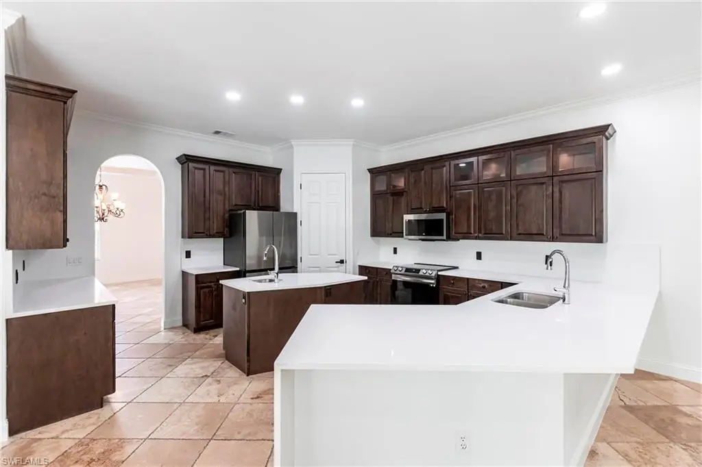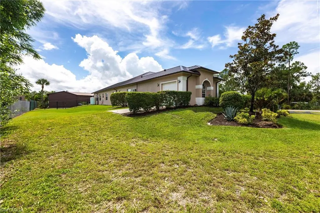 A beautifully renovated 3,600 square foot home on a 2.81-acre property with endless possibilities for a large family - related living - entertaining - small business owner who needs parking and storage for equipment - RV and boat storage - cleared and fenced land for adding a guest house or horses. Featuring five large bedrooms plus home office, four bathrooms, dining room, huge kitchen with walk-in pantry, family room, media room with home theater equipment, newer salt water pool, extra-large covered lanai, 2021 metal roof, whole house RO water system, 10 – 12-foot high ceilings with crown molding, Travertine tile throughout, Hurricane impact doors and sliders, three-car garage with new epoxy floor, and so much more! Move-in ready! Easy access off Everglades Blvd and only two streets north of Golden Gate Blvd.