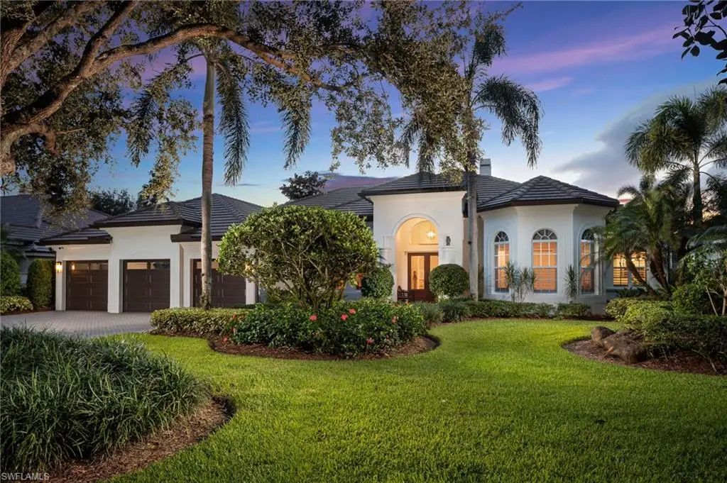 Step into an exceptional expression of luxury living within one of North NaplesÆ most sought-after country club communities. This meticulously renovated estate spans over 3,700 square feet of thoughtfully designed interiors, blending timeless architecture with the convenience of modern technology. Every element has been curated with precision between 2021 and 2025. The home showcases reimagined indoor and outdoor kitchens with premium appliances, quartz and granite finishes, and under-cabinet lighting. Flooring transitions seamlessly from rich hardwood in living areas to soft carpeting in bedrooms and elegant tile in baths. All bathrooms have been retiled with updated sinks, fixtures, and His-and-Her primary suites. Enhanced lighting, plantation shutters, and a custom entertainment center elevate everyday living. Impact-resistant windows and doors, wind-rated garage systems, new HVAC, water heaters, and roof with gutters ensure peace of mind. Smart-phone integration allows effortless control of appliances, HVAC, pool, security, and storm shadesùunderscoring a lifestyle defined by both sophistication and ease. The screened lanai frames a resort-style pool and spa with new enclosure and equipment, offering a serene backdrop of lake views and dramatic sunsets. Beyond the residence, The Vineyards delivers an unmatched resort lifestyle. Homeowners enjoy the security of gated privacy and the natural beauty of manicured lakes, lush landscaping, and winding paths. Steps away, the communityÆs country club presents championship golf, tennis, pickleball, a state-of-the-art fitness center, resort pools, and vibrant social programming. Nearby, NaplesÆ world-class beaches, dining, theaters, and upscale shopping complete the experience. A rare opportunity to own a property where every detail has been consideredùthis home represents the perfect balance of luxury, lifestyle, and lasting value.