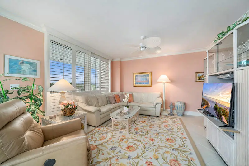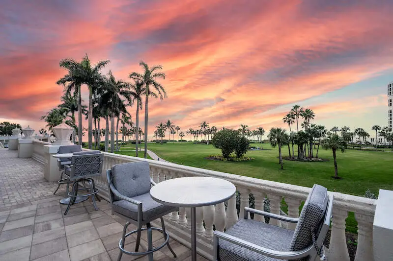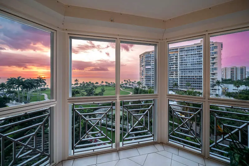 This thoughtfully designed open floor plan seamlessly integrates a spacious great room and den area, both providing unparalleled versatility for comfortable living. Attention to detail is evident throughout, showcased by custom drapery panels, plantation shutters, intricate millwork, and expansive sunrise and sunset terraces. The open concept great room and dining space are bathed in natural light, enhanced by floor-to-ceiling windows. The kitchen, a sunlit haven with ample countertops, features white cabinets and a breakfast room. The residence encompasses two generously sized guest suites, each boasting en-suite baths and walk-in closets. The owner's suite offers a retreat-like ambiance, opening to a screened lanai and framing captivating views of the Gulf of Mexico through expansive walls of windows. Positioned as an end unit, this condo affords 180-degree panoramic vistas of the gulf, park, and bay, creating a truly breathtaking living experience. Within minutes, enjoy the cultural offerings of Venetian Village, Waterside, Artis & Old Naples. Embrace the natural beauty of Park Shore with its parks & green spaces, creating a lifestyle that encompasses coastal living.