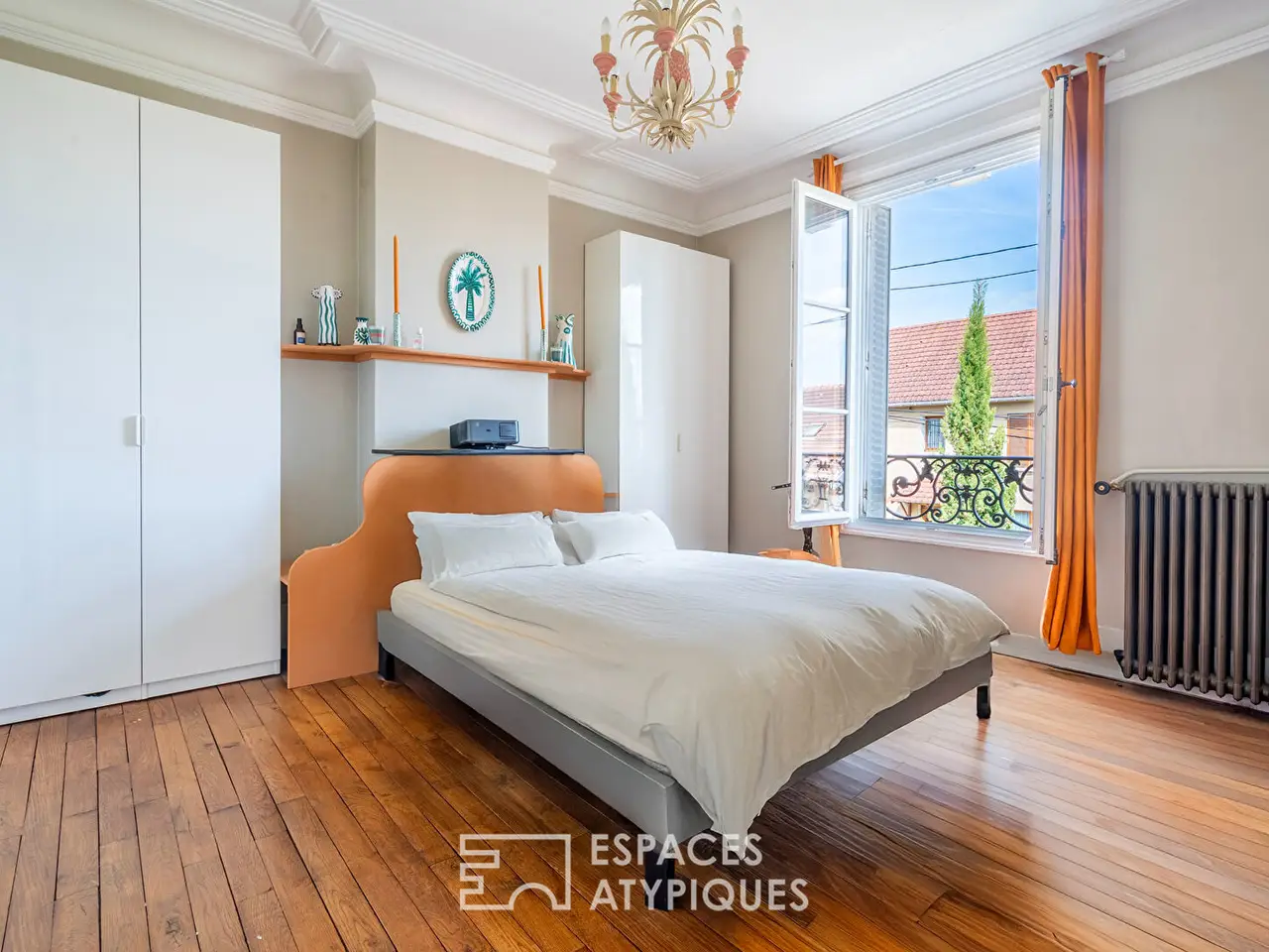 In the heart of the Église district of Neuilly-Plaisance, Villa Bon Accueil, a listed mansion dating from 1884, spans 152 m2 over four levels, combining period elegance with contemporary features.From the entrance, the charm of the period cement tiles sets the tone and harmonizes with the light and warm spaces of the ground floor. A cozy living room, a light-filled office, and a dining room adjoining a fitted kitchen make up this living space. A separate toilet completes the ensemble.Upstairs, two large bedrooms offer generous volumes, one of which has an adjoining office, ideal for working from home. A bathroom with a toilet and a separate dressing room ensure everyday comfort and functionality.The top floor houses a private master suite with a separate shower room and toilet. Under the eaves, this bright refuge retains a soft and pleasant atmosphere.The fully renovated basement houses a spacious workshop with direct access to the garden. This independent space, equipped with a laundry room, can easily be converted into a self-contained studio as needed.The garden, sheltered from view, pleasantly extends the living spaces and enhances the peaceful atmosphere of the house.The entire property has benefited from a careful renovation: insulation using bio-sourced materials, custom-made window frames, high-end faucets?every detail has been carefully considered with respect for the location and its history.A listed character house, combining authenticity, high-quality features, and quality of life, close to shops and public transport via the Voie Lamarque.RER A: Neuilly Plaisance, 750 meters awayCity center: 450 meters awayREF. 11207Additional information* 6 rooms* 4 bedrooms* 2 bathrooms* 2 floors in the building* Outdoor space : 352 SQM* Property tax : 3 500 €Energy Performance CertificatePrimary energy consumptione : 291 kWh/m2.yearHigh performance housing*A*B*C*D*291kWh/m2.year64*kg CO2/m2.yearE*F*GExtremely poor housing performance* Of which greenhouse gas emissionse : 64 kg CO2/m2.yearLow CO2 emissions*A*B*C*D*64kg CO2/m2.yearE*F*GVery high CO2 emissionsEstimated average annual energy costs for standard use, indexed to specific years 2021, 2022, 2023 : between 3800 € and 5180 € Subscription IncludedAgency feesThe fees include VAT and are payable by the vendorMediatorMediation Franchise-Consommateurswww.mediation-franchise.com29 Boulevard de Courcelles 75008 ParisInformation on the risks to which this property is exposed is available on the Geohazards website : www.georisques.gouv.fr