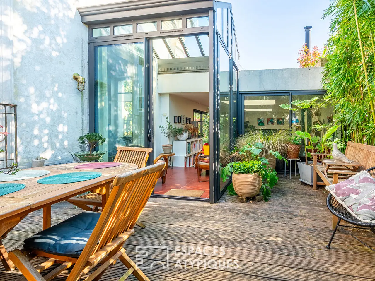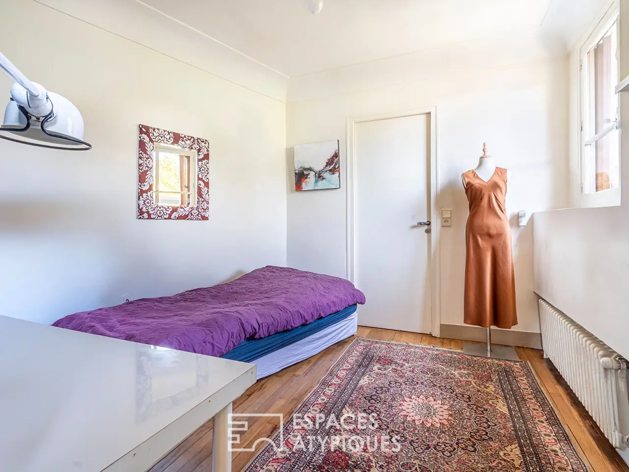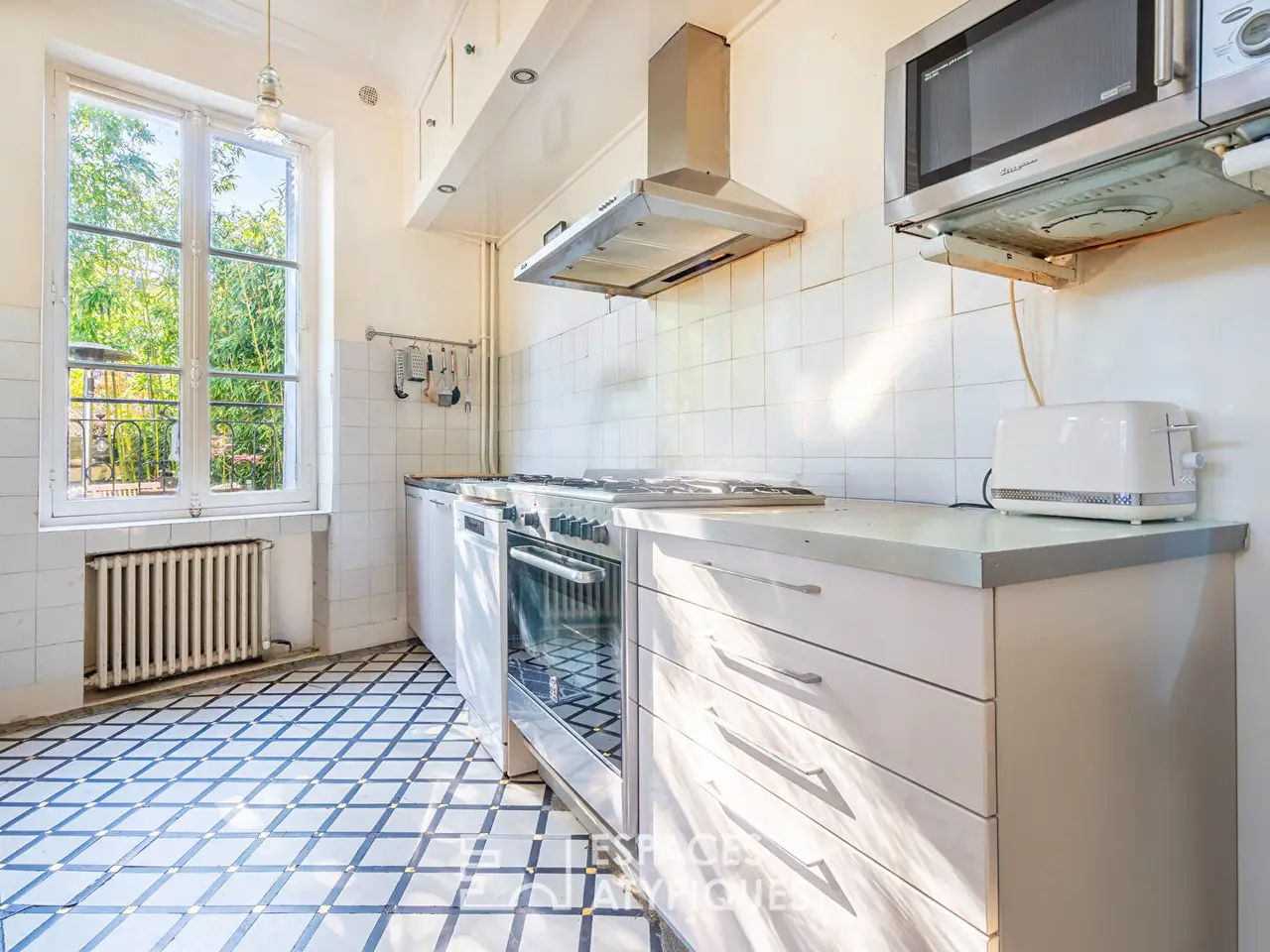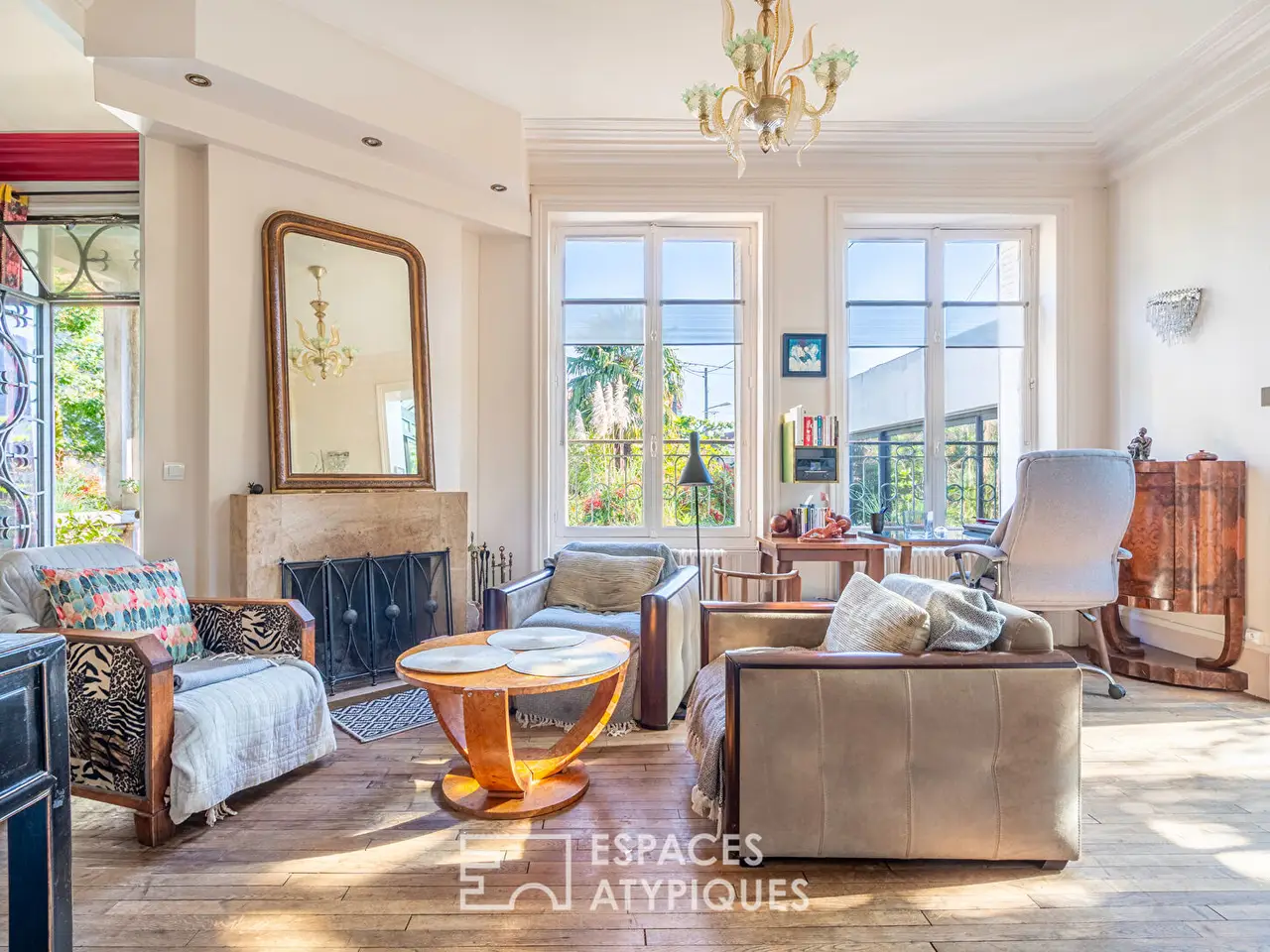In the sought-after Église district of Neuilly-Plaisance, this former orangery dating from 1880, subtly renovated, offers 160 m2 of bright and harmonious spaces, set in the heart of a 541 m2 wooded garden with no overlooked views. A testament to its time, the original building has retained all its charm, while its recent extensions, including a vast living room and a glass roof, enhance the property with elegance and modernity. These living spaces, facing the garden, offer remarkable volume, enhanced by a ceiling height of over 3 meters. Numerous windows, ideally oriented, allow natural light to flood the spaces at all hours of the day. The open kitchen, directly connected to the living room, creates a welcoming and pleasant space, ideal for entertaining or sharing everyday moments. A bathroom with a toilet completes this level. Upstairs, the sleeping area consists of a library landing, three generous bedrooms designed for comfort and tranquility, and a bathroom with WC. On the mezzanine floor, a 65 m2 space gives free rein to the imagination: an office, recreation room, home theater, or workshop. Outside, an intimate patio extends the living spaces in a soothing atmosphere, while the garden, meticulously maintained and completely private, invites relaxation. A unique and inspiring property, combining period charm, modern comfort, and a prime location in the heart of Neuilly-Plaisance. A lock-up garage completes the property's features, as does a 45 m2 expansion potential, to be developed as needed. RER A: Neuilly-Plaisance 800 meters City center: 350 meters REF. 10695 Additional information * 8 rooms * 3 bedrooms * 2 bathrooms * 2 floors in the building * Outdoor space : 541 SQM * Parking : 1 parking space * Property tax : 3 632 € Energy Performance Certificate Primary energy consumption f : 406 kWh/m2.an High performance housing