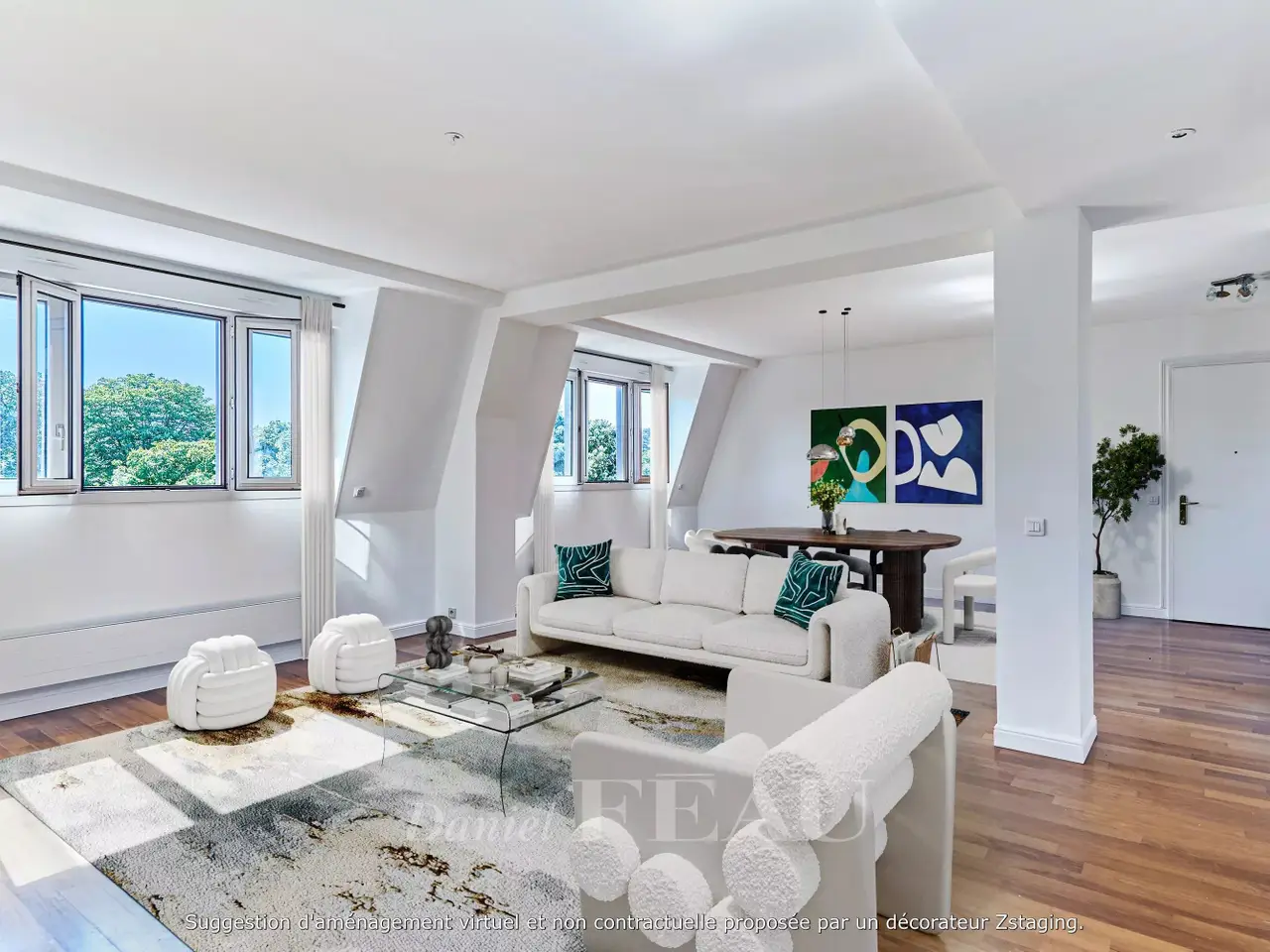 Bagatelle neighbourhood. This bright and peaceful apartment offering 137 sqm of floor space is on the 3rd floor of a superb listed early 20th century building. In very good condition, it includes a spacious living/reception room, a fitted and equipped semi open-plan kitchen, a guest wc, four bedrooms, a bathroom/wc and two shower rooms. The apartment is dual-aspect and enjoys views of the co-ownership's gardens and the Bois de Boulogne. With a parking space and a cellar.
