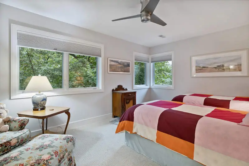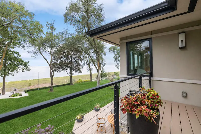 Perched along the shores of Lake Michigan within the exclusive Riviera Association, this 5-bed, 5.5 bath home epitomizes the elegance & timelessness of Lakefront contemporary architecture. Designed in 2013 by the renowned architects Perkins, Pryde & Kennedy & completed in 2015, this 5,000+ sq ft home masterfully represents a modified Prairie Style design full of modern luxury & stunning natural surroundings. Exquisite hardwood floors infuse warmth into every room. Expansive glass walls offer panoramic views of Lake Michigan, seamlessly connecting the indoor & outdoor spaces. The open and light-filled design allows residents to fully immerse themselves in the tranquil landscape. Featuring five spacious bedrooms and five and a half beautifully appointed baths. Each ensuite bedroom is thoughtfully designed to provide comfort & a sense of serenity. The living areas are characterized by their openness, flooded with natural light, and offering breathtaking vistas of the lake. Enjoy the all-level elevator for convenience; private lakefront office; lush green lawn with plenty of room for a pool; spacious decks; Elan Smart Home system; beach cabana for relaxing by the shore & easy access to the private association beach via a low bluff. For the discerning buyer who desires more than just a home, this work of art captures the essence of Lakefront Contemporary design while offering modern luxury.