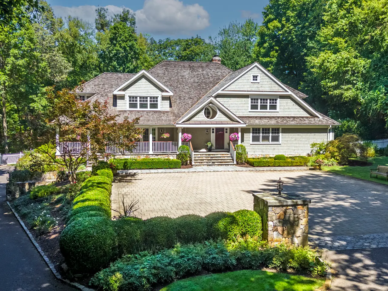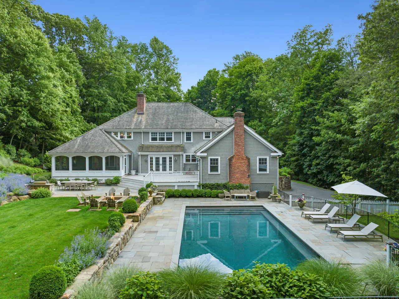 Nantucket-Shingle coastal-chic style home with exceptional amenities in Hoyt Farm. Nestled on a cul-de-sac within a sought after neighborhood, a custom-designed home embodies a captivating shingle style home. This meticulously updated residence offers an abundance of space and remarkable features for comfortable living and entertaining. Upon entering the double-height foyer, you are greeted by an immediate sense of spaciousness and elegant flow. The heart of the home lies within the state-of-the-art gourmet kitchen, breakfast room & great room, which seamlessly connect to the outdoor entertaining spaces. The home uniquely features 2 primary suites; 1 conveniently located on the 1st floor & the other on the 2nd floor. This configuration is ideal for an in-law or au pair suite, providing privacy and comfort for multi-generational living or guests. Additional living and entertainment spaces extend to the finished lower level, which boasts a wine cellar and an exercise room. This thoughtful design ensures that every need & desire for relaxation, recreation, and luxury is met within this magnificent home. Step into your own private oasis with a stunning saltwater pool & fire pit, perfect for entertaining or relaxing evenings under the stars. The beautifully manicured gardens surround the home creating a picturesque setting, while the screened-in porch offers a tranquil space to enjoy the beauty of nature element-free. Finished lower level includes gym, wine cellar & playroom. The Hoyt Farm Neighborhood is renowned for its welcoming community, offering a vibrant calendar of social events such as annual neighborhood block parties, ice cream socials and progressive dinners. The neighborhood also provides an ideal setting for daily walks and bike rides, further enhancing its desirability. This exceptional home presents a rare opportunity to experience the epitome of comfort & style combined with luxurious amenities and a strong sense of community. Located conveniently close to town center, Express train to NYC, library, schools park and all the quaint village of New Canaan has to offer.