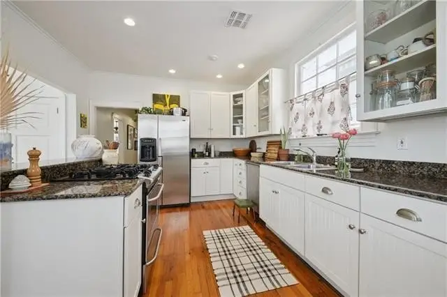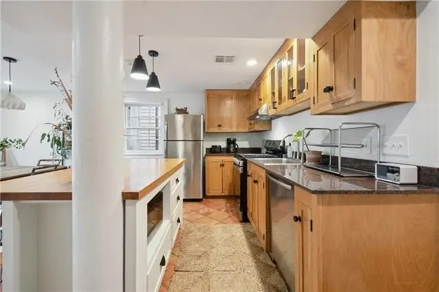Beautiful raised basement bungalow on a picturesque tree-lined block in the heart of historic Bayou St. John! The main house is currently configured as two units with separate entrances, but the original staircase remains intact, allowing for easy reconnection into a single residence if desired. The light-filled owner’s unit boasts a modern kitchen with a central island, hardwood floors, 2 bedrooms, 1.5 baths, spacious living areas, and a laundry room. The downstairs unit features charming Saltillo tile, its own kitchen with inset cabinetry, laundry, 2 bedrooms, a large entry/office space, and a generous bath with a walk-in shower. A detached guest house—separately metered with its own address and entrance at 2820 Orchid St.—offers a spacious two-story layout with 1 bedroom, 1.5 baths, and laundry. Additionally, a small garage on Orchid St. provides convenient storage. This is a rare opportunity in one of New Orleans’ most beloved neighborhoods, just steps from the Bayou, City Park, Jazz Fest, and iconic local restaurants.