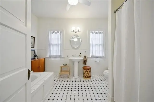 - Walk-in shower in generous bath
