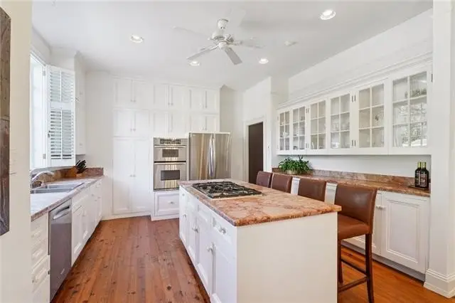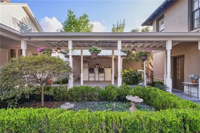 Spectacular Uptown Compound with Dream Guest House! Don't miss this rare opportunity to own a truly multi-generational home on a private, walled and gated compound in historic Uptown, New Orleans. Located on an impressive double corner lot, it includes this stately Mediterranean Revival Primary Residence, Guest House, Pool, and 2-car garage. A fully furnished 2 bedroom and 1 bath ground-floor apartment with private entrance (and separate utilities) is great for guests, live-in assistants, or extra income. The residence has 6 spacious bedrooms and 5 fully renovated stone/tile bathrooms. Original architectural elements, such as oak inlaid wood floors, mahogany inlaid doors, custom-milled inset kitchen cabinets, and wood-paneled Tudor-style library, have been maintained and blend seamlessly with the modern renovated amenities. Each of the upstairs rooms is light-filled, has vista views and custom shutters. The whole-home sound system makes entertaining effortless. The ground floor areas are spacious and well designed with family comfort and convenience in mind. Two family-room options with French doors and full bath access make gatherings a breeze. But the ultimate indulgence for a large family, caretaker, or sports enthusiast is the mud room with an adjacent full walk-in shower!! Sportsmen, athletes, and moms alike can offload equipment, gear, or groceries, steps from the car, through a private side entrance into the Mudroom. The outdoor oasis is thoughtfully landscaped with livability and convenience in mind. A grass side yard makes a wonderful dog-run, garden, or potential putting green! A covered breezeway connects the house to the outdoor bar/kitchen and guest house. The veranda overlooking the pool has alfresco dining for 20+, or dine inside and enjoy a movie night on your 75-inch TV. A private entrance from Valmont and an attached two-car garage give the guest house great optionality. Don't miss this rare opportunity!