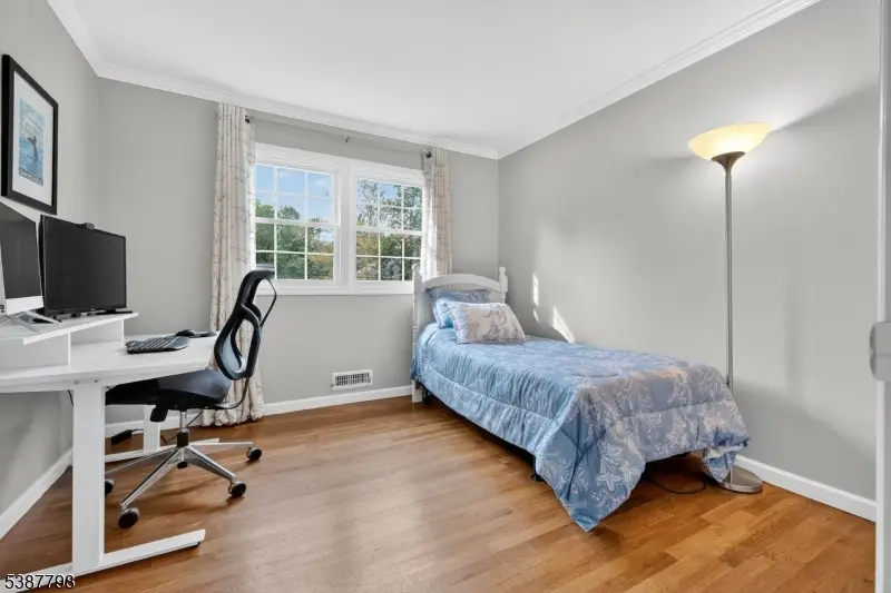 Wow! 54 Badgley will impress you from the moment you pull up to this meticulous home! They say "the kitchen is the heart of the home" and it speaks true for 54 Badgley! The 1st floor offers a large living room with an abundance of sunlight and an open floor plan to the dining room and the kitchen. The expanded kitchen offers granite counter tops, custom cabinetry, stainless steel appliances and a stunning eating area accented by a cathedral ceiling and windows on three sides overlooking the yard, deck and patio (this area is ideal for dining, game night or entertaining!) Both the dining room and kitchen offer egress to the private trek deck. The ground floor offers a gracious foyer, large family room with egress to the patio, custom built-in cabinet with lighting, the 5th bedroom (also suitable for home office) and a powder room. Upstairs are three bedrooms inclusive of the primary suite and a full bath. The third level offers another spacious bedroom with custom built-in cabinets/closets (currently used as primary). The basement is all set for conversion to a recreation room or home gym! The outside is the perfect set-up for entertaining with a large private yard, spacious patio and deck. Let's talk about location!!! Just 0.25m to Salt Brook Elementary, 0.5m to NP Train Station and bus to Port Authority, 2 blocks to Lions Park playground and 0.75m to New Providence's vibrant downtown restaurants and small businesses. Welcome home!