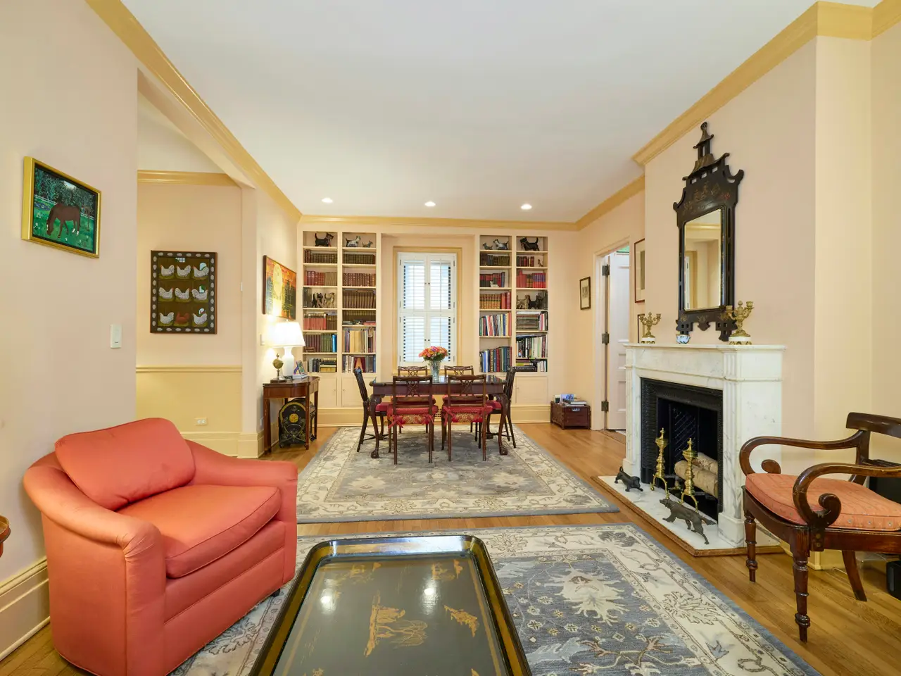 Elegant Pre-War Residence with Rare 10-Foot Ceilings on Park Avenue Rarely available, this gracious four-room apartment boasts 10-foot ceilings. Enter through a spacious foyer , leading into a substantial living room and adjoining dining area. A beautiful marble fireplace serves as the focal point. The home features two well-proportioned bedrooms, each with its own en-suite bath. The primary suite offers double exposures, abundant closet space, and a windowed bath. The second bedroom includes custom-built cabinetry and shelving, perfect for a library, home office, or guest space. A washer/dryer hookup is conveniently located just outside this bath. The living room is equipped with through-wall air conditioning, while the other rooms have window units . The new kitchen features rich wood cabinetry, granite countertops, and top-tier appliances, including a Sub-Zero refrigerator, Sterling Range gas oven, and Bosch dishwasher. Located at the intersection of Park Avenue and East 82nd Street, this pre-war, full-service, white-glove cooperative was built in 1921. The building offers impeccable service, a state-of-the-art fitness center, and a beautifully landscaped rooftop terrace . 50% financing allowed , Pied-A-Terre, and Pet friendly building. There is an assessment of $390.41 per mo. Ideally situated, 969 Park Avenue is moments from shopping for all your needs, dining, and major museums, with convenient access to subway and bus transportation in every direction. This apartment offers timeless pre-war charm with modern comforts.