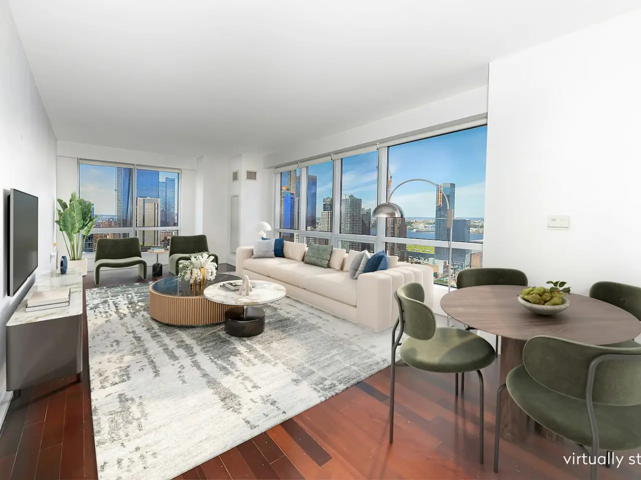 -Spectacular views, amazing sunsets and the most coveted one bedroom layout in the building. -Stunning high floor corner layout, one bedroom/one bath with South and West exposures. -794 sf with a 100% usable floorplan, floor-to-ceiling windows, hardwood floors, top of line appliances complete with washer/dryer. -Extra-large living room with views of iconic downtown including statue of liberty, One world trade, Hudson yards and the Hudson river. -A fully equipped kitchen set up for entertaining complete with floor to ceiling window - West facing master bedroom that fits a king size bed and the only one bedroom layout that has a walk-in closet. -A full-service luxury condominium that offers valet, concierge, maid and dry cleaning services and onsite parking. - The Orion is a perfect investment or a Pied- a-terre and pet friendly.