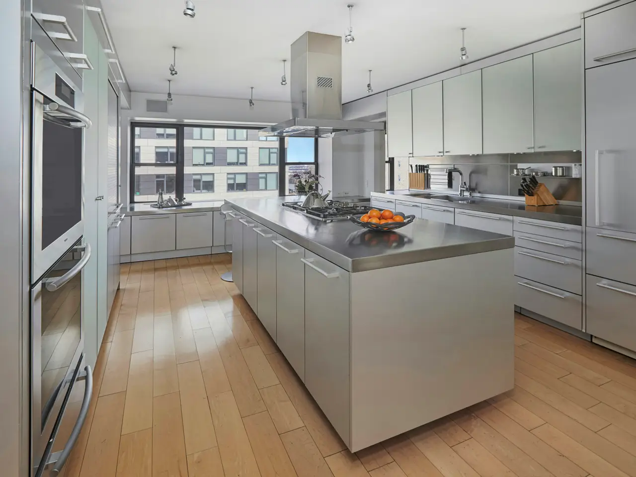 • Stainless steel chef's eat-in kitchen with premium appliances
