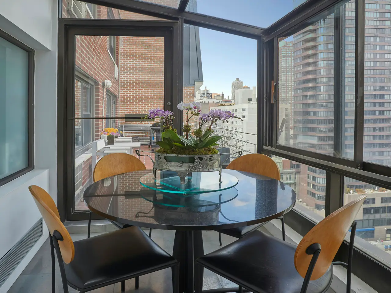 An Indoor and Outdoor Oasis!! Perfectly situated on Manhattan's 86th street corridor - welcome to this sprawling 4 bedroom, 4 bath, 2 half bath home. This high floor, Postwar Cooperative offers both gracious living and grand entertaining indoors and out! Architecturally distinctive, the dramatic entry gallery features two floating concrete walls, each displaying artwork in an almost "gallery-like" setting. From there you enter the double size Formal Dining Room. This space is large enough for 2 square tables seating 8 at each, or a long harvest-like table, where 14+ can dine. From this room, the exposure is Northeast and includes 6 windows of open city and East River views. The room feels almost loft-like until you close the 3 sets of fluted glass pocket doors - turning the room into a warm intimate space. A grand scale Living Room is parallel to the Dining Room. It too enjoys 6 windows of open city and East River views! This room opens to the main Northeast facing terrace (30 X 6 ft.), which is a perfect extension of the Living Room. A mirrored wet bar and a half bath complete the Living Room. Adjacent to the Living Room is the 4th Bedroom/Office with an en-suite full bath and a cedar closet just outside. This room currently functions as an office with custom designed wood cabinetry including extensive storage, shelving and a built-in desk. The exposure is South with open city views. It is important to note that lighting and storage space play a significant role in the entire apartment. Throughout the apartment there are walk-in closets, dressing rooms and hidden storage in every room. In both the Dining Room and Living Room, there is extensive spot lighting to frame artwork and sculptures. Two additional rooms complete the North side of the apartment. The Kitchen: a stunning stainless steel chef's eat-in Kitchen features a Subzero Fridge with 2 freezer drawers, a Miele microwave drawer, a 5 burner cooktop - which vents out, double wall ovens and a Bosch dishwasher. Additionally, a small portion of the 2nd terrace has been "green-housed" and added to the Kitchen as a charming breakfast room. A very large pantry room - accessed from the kitchen, houses a stacked Miele Washer/Dryer (which vents out), a 2nd sink and an additional Subzero Fridge & Freezer and of course - storage. Den: This spacious open room serves as a media center with a large wall mounted flat screen television and 2 generous seating areas. It looks onto the 2nd terrace and enjoys 6 windows of open city views. The South facing wing of this home feature 3 bedrooms. The 1st - has an en-suite full bath, a large closet and 2 built-in closets. This bedroom includes a small terrace which has been fully enclosed and added to the bedroom itself. The 2nd has its own full bath located just outside the bedroom and includes a side by side double closet, 2 smaller built-in closets and a Murphy bed. The Primary Bedroom has a full bath, as well as a separate bath area with a stand-alone sink, vanity and Jacuzzi tub. There is also a custom built media and storage unit. This bedroom has 7 closets, including a huge walk-in. The 3rd terrace (34 X 3.5) which features open city views and faces South, is accessed from this bedroom. Apt. 17C features thru-wall heat and air conditioning in all rooms. Please note: a storage unit transfers with the sale. 510 East 86th is a full service Cooperative, minutes from Carl Schurz Park, with sweeping water views, jogging and cycling paths, dog runs and basketball courts as well as The East River Promenade. There is a bike room, common storage area & central laundry. Pets are welcome, too. Excellent restaurants, shops and convenient transportation make this the perfect apartment to call home.