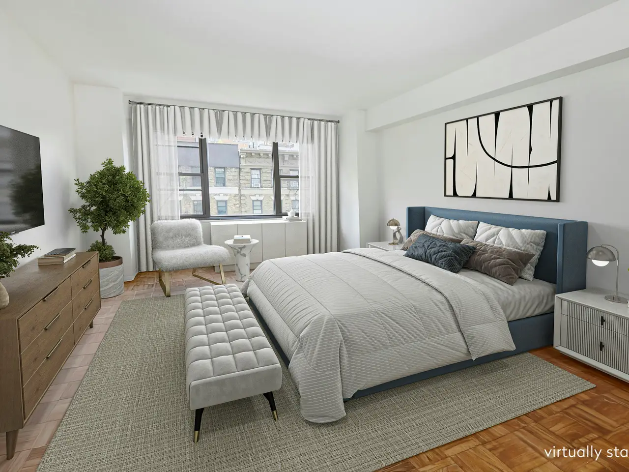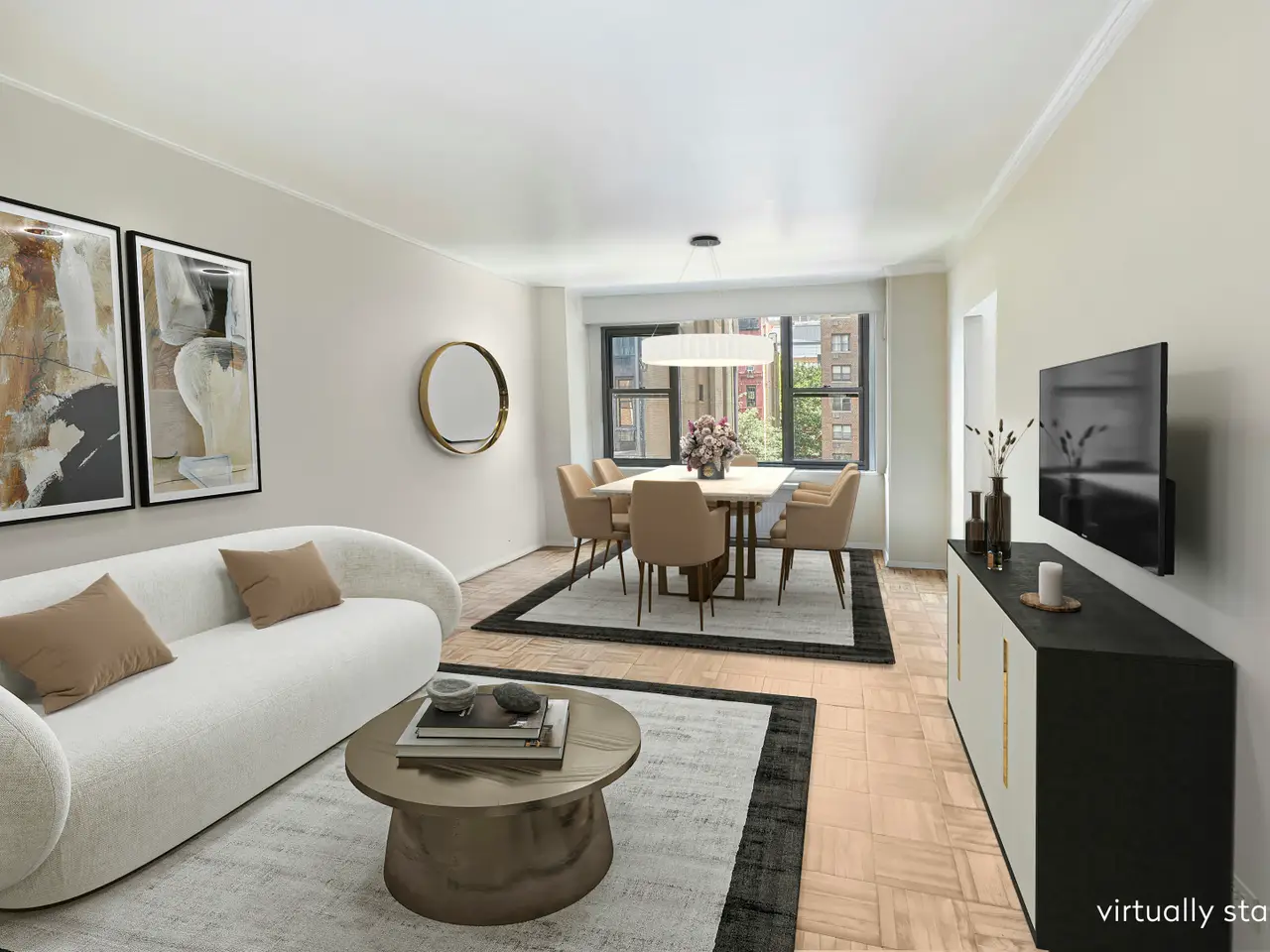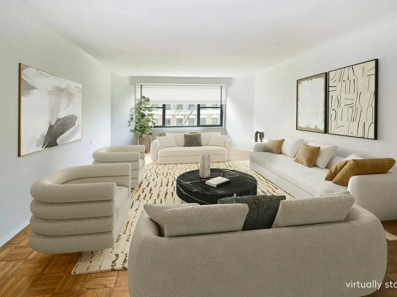 This rarely available C line classic 7 room home at 60 East End Avenue has just come to market! This spacious and sunny coop faces North, South and West; the major rooms face South and are bathed in sunlight. The classic layout is highly flexible. The entry foyer has a large coat closet and powder room, leading to a central gallery. To the left is the gracious living room, and to the right is a multipurpose room, currently a formal dining room, which can also be used as a media room or dining/den. The span of these rooms is 60 feet, creating a great flow for living and entertaining. Off the living room is a large bedroom with oversize windows and Southern exposure, as well as walk-in closet and ensuite bath. The location makes it a perfect den or library, and it is often used this way. Off the gallery there is a hallway with a double linen closet that leads on the left to the spacious South facing Primary Bedroom with 2 large walk-in closets and windowed Master Bath. Across the hall is a large bedroom with open views and ensuite bath. All the windows in the apartment are oversized and have been upgraded. There are individually controlled HVAC units in every room. Parquet floors in excellent condition run throughout. The renovated eat in kitchen is enormous, with service entrance and washer/dryer. Most unique in this kitchen is a windowed breakfast room with suburban proportions; it quickly becomes a popular spot. Adjacent is a fourth bedroom, currently used as a wood paneled home office, with ensuite bath. This room can also be opened to the kitchen to create a huge country kitchen with full laundry room or it can be a cozy guest bedroom or staff room. 60 East End Avenue is an impeccably maintained full service cooperative with full time doorman, concierge and live in resident manager and only three apartment per floor. It has a beautiful approach, with a circular driveway surrounded by gardens filled with flowers and trees, seasonal plantings and discrete path lighting. There is a fully equipped windowed fitness room and a garage accessible from the lobby with a reduced rate of $375 per month for shareholders. Every apartment has private storage. There is a new laundry room and bike room. 60 East End boasts a fabulous new architect designed lobby, entrance and elevators. The hallways are currently being renovated, with completion expected in Fall 2025. The building is located across from the East River and the river side Finlay walk and Carl Schurz Park, a mini Central Park featuring 15 acres of waterfront woodlands, 2 pet runs, and a modern playground. This quiet enclave boasts some of the city's finest schools and has easy access to all transportation, including the new 2nd Avenue Subway and the FDR drive. Welcome home! 60% financing permitted 2% transfer tax paid by purchaser Pied A Terre permitted Pet Friendly