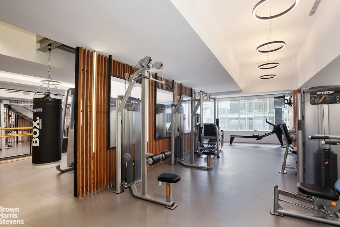 Well-equipped fitness center with sauna