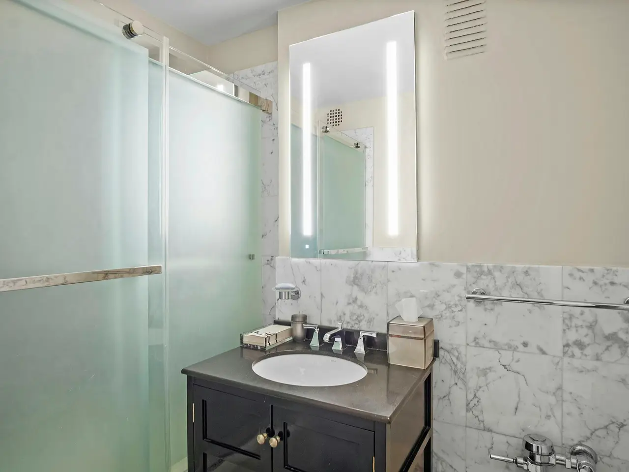 Available October 6th. Sprawling and beautifully renovated, this 2 Bedroom + Home Office, 3 Bathroom residence at The Westmore offers sophisticated living in a prime location, just moments from Columbus Circle and Central Park. Located in a classic Art Deco building, this expansive home seamlessly blends timeless architectural charm with high-end modern finishes. Upon entering, you're welcomed by a meticulously designed open kitchen that flows effortlessly into a gracious sunken living and dining area - an ideal layout for both everyday living and entertaining. The chef's kitchen is equipped with top-of-the-line Miele appliances, including a DynaCool integrated refrigerator with dual freezer drawers, gas cooktop and oven, dishwasher, and a Wolf microwave. A large island provides seating and serves as a perfect gathering spot, complemented by the dining alcove in the main living space. The sunken living room features wide bay windows that flood the space with natural light, as well as beautifully maintained hardwood floors throughout. A bonus full bathroom and a stacked in-unit washer/dryer add extra convenience to the main living area. Down the hallway, the bedroom wing is centered around a distinctive oval foyer - a peaceful sitting area that creates separation and privacy between the sleeping quarters and the main living space. The primary suite is a true retreat, boasting an oversized bay window with remote-controlled shades, custom closets, and a spa-like en-suite bathroom with elegant tile work, a glass-enclosed shower, and a window for natural light and ventilation. The adjacent home office, accessible from both the primary bedroom and the main hallway, features built-in bookshelves and can easily function as a den, guest room, or dedicated workspace. The spacious second bedroom also enjoys a large east-facing bay window with remote-controlled shades and a custom closet. Just across the hall, you'll find the third full bathroom - complete with a walk-in shower and premium finishes. Throughout the apartment, custom closets and thoughtfully chosen design details elevate the functionality and ambiance of the space. The Westmore is a top-notch full service Condop in Columbus Circle. This well-managed full-time doorman/concierge building boasts two recently renovated, fully-furnished and landscaped roof decks with grills, two serene interior gardens, recently updated resident-only fitness center, two large on-site central laundry rooms, updated elevators, live-in resident manager and fabulous staff. Live in the heart of Columbus Circle entertainment and convenience with a large selection of dining and shopping options and excellent public transportation options (A, C, B, D, N, Q, R, W, 1 and 2 trains and the M57 bus all within a short distance). Take advantage of being just half a block from Central Park, your backyard oasis, and within a short distance to Lincoln Center, Broadway's Theater District and the Deutsche Bank Center with amazing shops and Whole Foods. Tenant is responsible for $20 per person application fee upon application acceptance by landlord and upon lease signing the First Month's Rent, One Month Security and one-time non-refundable condop fees upon lease signing comprised of (1) Application Processing fee of $700, (2) Credit Check Fee of $120 per applicant, (3) Digital Submission Fee of $65, (4) Move-In Fee of $500, each subject to a 5% administration fee plus $500 refundable move-in deposit. All measurements and square footages are approximate and all information should be confirmed by customer.