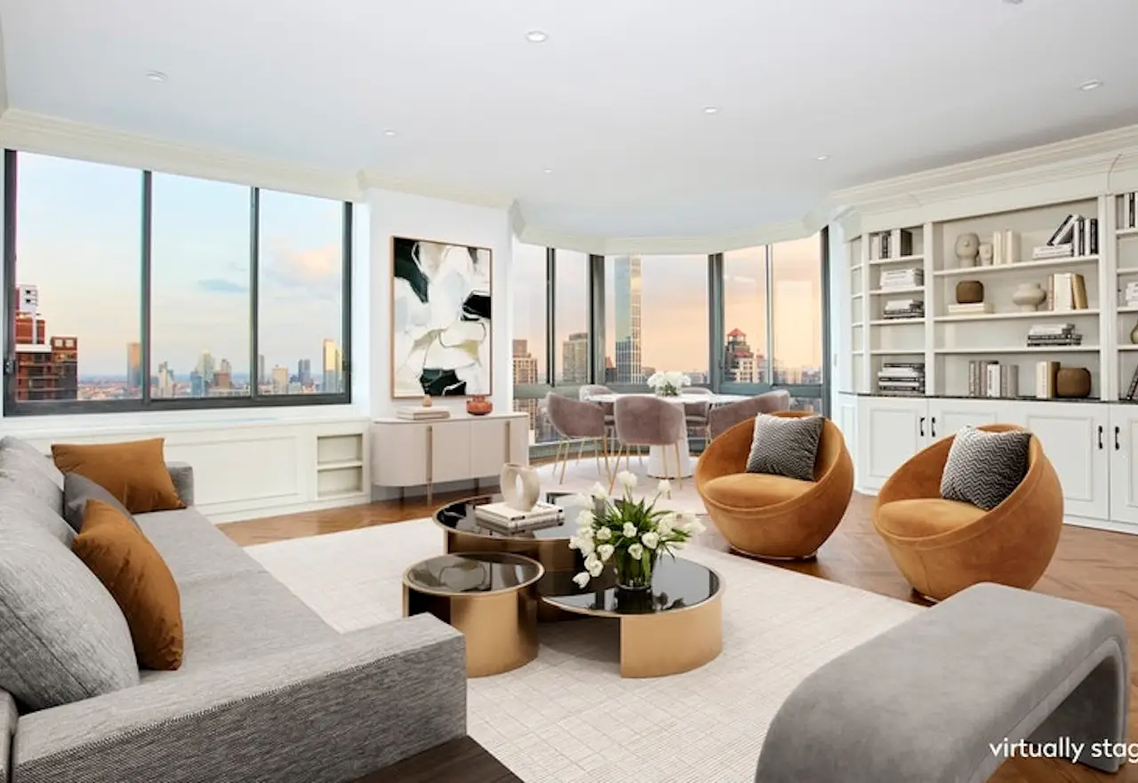 Luxury Condo with Stunning Skyline Views Located on the top floor of the E-Line apartments in the prestigious Bristol Plaza condominium, 35E is a custom designed corner residence offering luxury living and breathtaking views of the Manhattan skyline. Upon entering, you're greeted by a dramatic 9.4 ft ceiling and wall of windows with eastern exposures that fill the space with exceptional natural light. A powder room and closet/pantry are conveniently located on the right, leading to a large 22' x 20' living room. With the floor-to-ceiling corner windows, crown moldings, and custom built-in bookshelves, the space boasts both comfort and sophistication. Moving south, the dining area at the corner window bank enjoys panoramic views of the city. The living room flows into the large chef's kitchen, which features a 36" GE Cafe gas range, dishwasher, Sub-zero refrigerator, ample counter space and cabinetry, a breakfast bar with oversized southern windows, and hidden washer/dryer for convenience. The bedroom wing at the northern end of the apartment has an unobstructed view of the East River and the landmark buildings along the way. The primary bedroom (20'8" x 11'16") has an en-suite bath, two large closets with shelves and a built-in safe. The well-proportioned second bedroom is adjacent to a full bathroom and has a large closet. Both bedrooms have a ceiling height of 9.11 ft. Bristol Plaza is a 50-story luxury condominium on the Upper East Side with 295 residences. Residents enjoy white-glove service, including a full-time doorman and concierge, a residents-only health club with sauna, steam room, and massage rooms, a 50' glass-enclosed swimming pool surrounded by sun terraces, a resident lounge, a private circular driveway, and an on-site garage. The building is centrally located near the 4, 5, 6, N, W, R, Q, E, and M subway lines. Residence Features: - Panoramic Views of the Manhattan Skyline (South & East) - 4 Rooms / 2 Bedrooms / 2.5 Bathrooms - In-unit Washer/Dryer (Vented) - Custom Built-in Bookshelves - Floor-to-Ceiling Southeast Corner Windows - Double-pane Windows - Hardwood Floors - Exceptionally Quiet - 1,366 Square Feet - Full-time Door Staff & Concierge - On-site Parking Garage - Club Floor with Panoramic Views (fitness center, 50' glass-enclosed pool, sun deck, sauna, & resident lounge) - Direct Access to Lobby from Private Circular Driveway - Investment-friendly - 90% Maximum Financing - 2% Building Transfer Fee