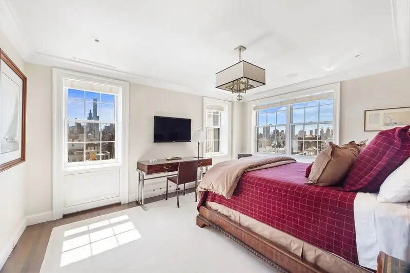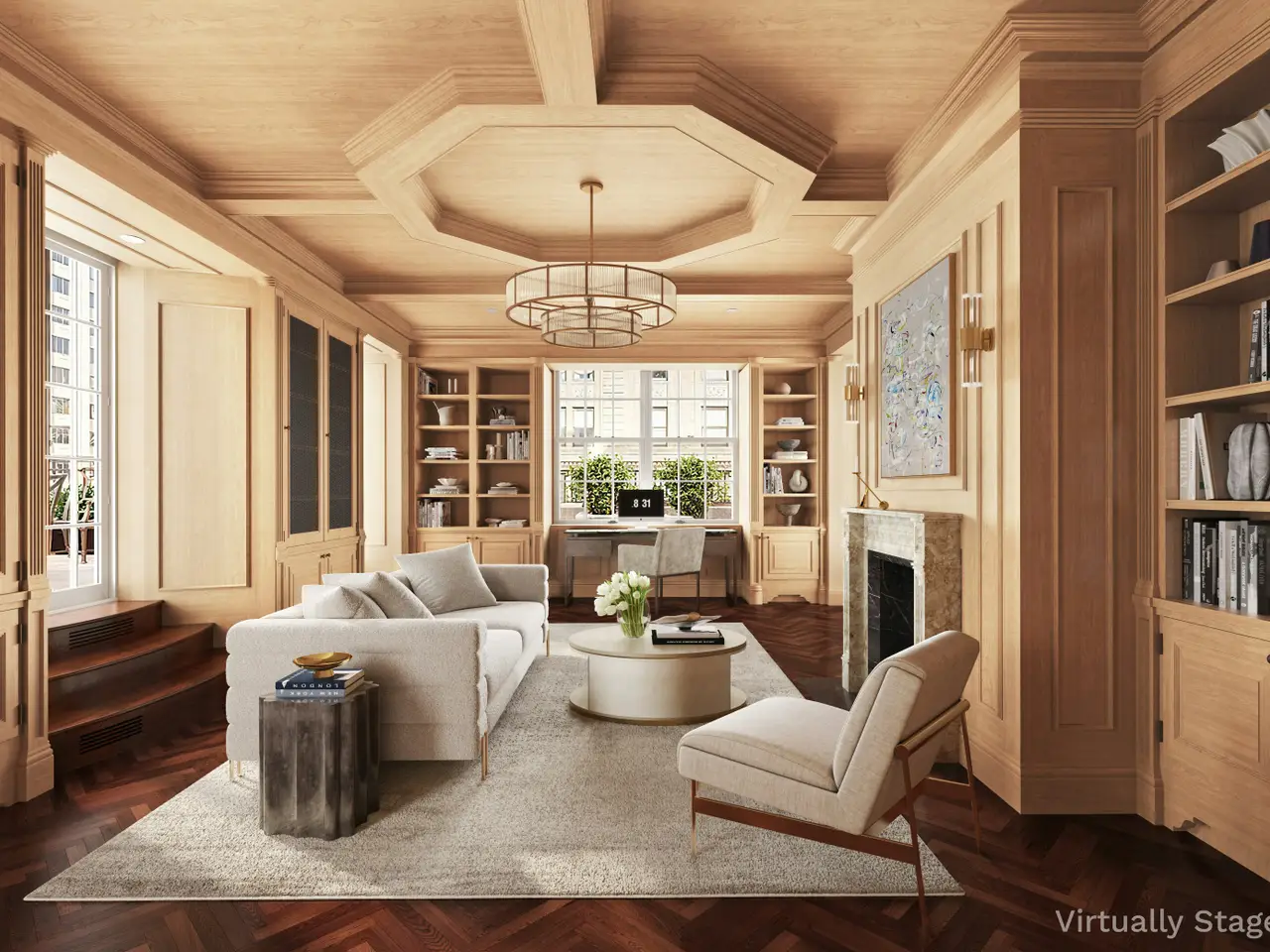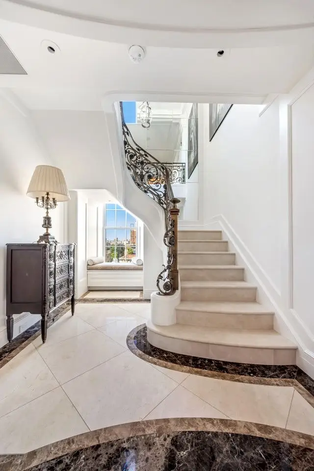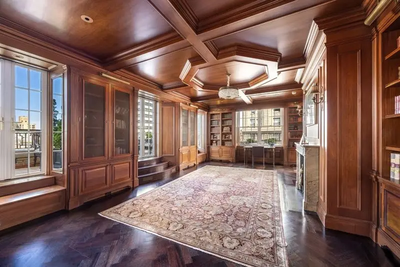 TRIPLE MINT 6,985 SQ FT. PENTHOUSE Perfectly situated in one of Park Avenue's most prestigious white-glove cooperatives, this extraordinary penthouse has been renovated to perfection and boasts 6,985 square feet of interior space and 1,300 square feet of beautifully landscaped terraces. The home enjoys magnificent open views spanning westward to Central Park and capturing the Manhattan Skyline to the south. The residence consists of 14 rooms, 5 bedrooms, 6 full bathrooms, and 2 powder rooms. Natural light stream in from all four exposures throughout the day. The 16th Floor: A private elevator landing opens into a dramatic circular marble gallery, anchored by a sweeping staircase with a finely wrought bronze balustrade. To one side, a handsome paneled mahogany library with a wood-burning marble fireplace and three French doors opens to a western terrace facing Central Park. Adjacent, a large and inviting corner family room has access to an additional landscaped terrace. At the heart of the home, the spectacular chef's kitchen is designed for both everyday living and grand entertaining. Outfitted with custom cabinetry, expansive Carrara marble surfaces, and top-of-the line appliances, it provides both elegance and functionality. A private office , powder room and internal elevators complete this level. The 17th Floor: Ascending the marble staircase-or arriving by elevator to a private elevator vestibule-guests are welcomed into an expansive marble gallery leading to an impressive living room and an elegant circular dining room. Perfectly proportioned and filled with natural light streaming in through oversized picture windows, the living room enjoys triple exposures and striking city views. The dining room, distinguished by mahogany inlaid floors and a marble wood-burning fireplace, sets the stage for unforgettable gatherings. Supporting these grand entertaining spaces are a fully equipped butler's pantry, staff quarters or fifth guest suite with full bath, and an additional powder room. The 18th Floor: The enormous private bedroom floor has a total of four bedrooms and five bathrooms. The sprawling primary suite has dual over-sized bathrooms and vast amounts of closet space. The suite has triple exposures and is surrounded by a beautifully landscaped terrace with open views toward Central Park. There are three additional corner bedrooms with an en-suite marble baths and walk-in closets. All of the bedrooms have impressive open views and are pin-drop quiet. A spacious laundry room completes this level of the residence. The Building: Built in 1930 and designed by renowned architectural firm Sloan & Robertson, 895 Park Avenue is a prestigious white-glove cooperative in the heart of the Upper East Side Historical District. Residents enjoy impeccable white-glove service, including 24-hour doormen, porters, a resident manager, a state-of-the-art gym, and a squash court. The building permits 50% financing, is pet-friendly, and there is a 3% buyer-paid flip tax.
