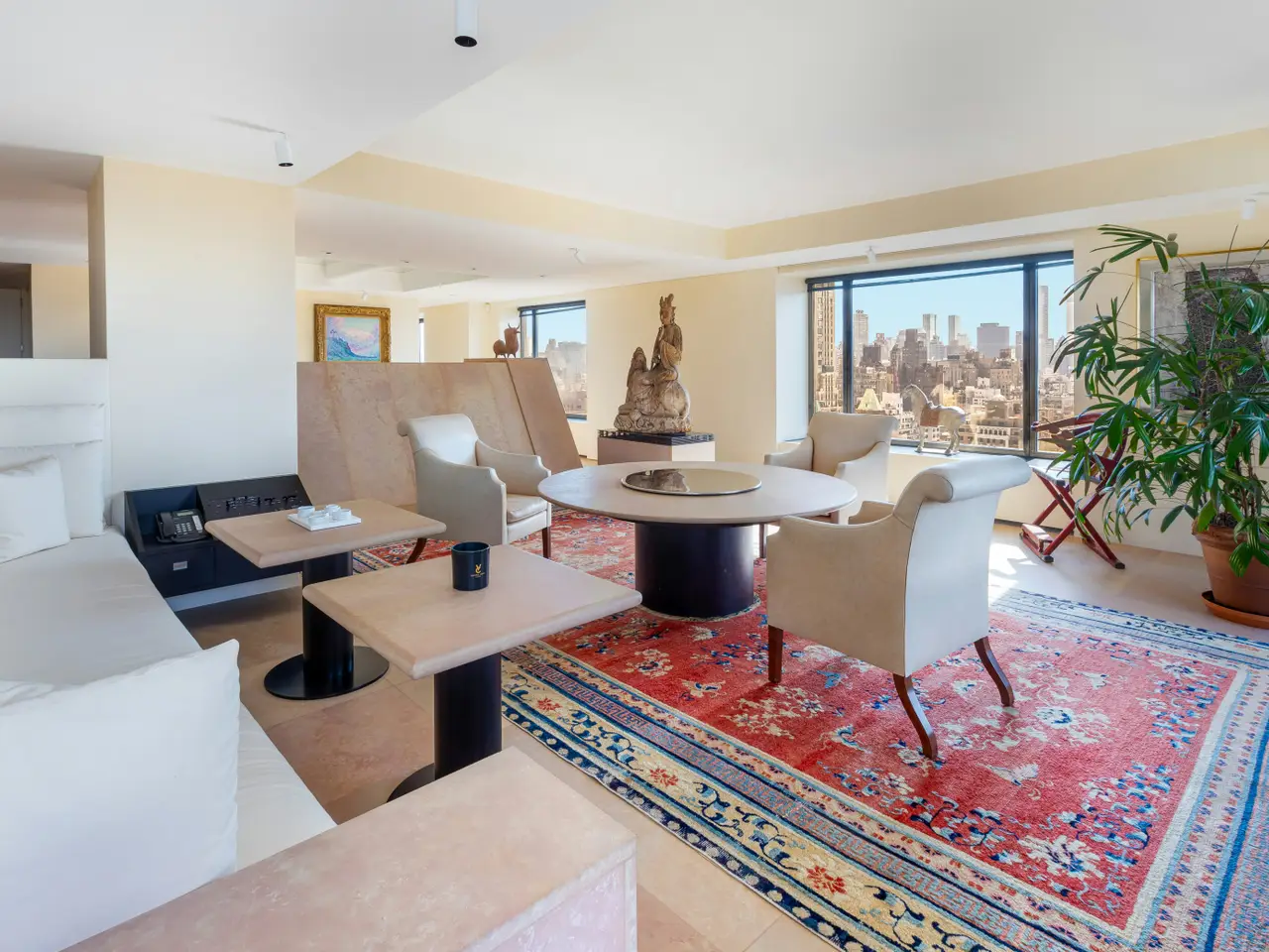 A Trophy Duplex Above Central Park Perched high above Central Park in the prestigious 980 Fifth Avenue cooperative, this rare 10-room duplex showcases sweeping views of the Manhattan skyline, the Metropolitan Museum of Art, and the Park's endless greenery. Twelve oversized south- and west-facing windows flood the residence with light throughout the day and frame some of the city's most iconic vistas. The apartment offers four spacious bedrooms plus a staff room, an elegant bar, and a windowed eat-in kitchen. A striking spiral staircase links the two levels, providing both architectural drama and a gracious flow. With grand entertaining rooms balanced by private quarters, the residence is both impressive in scale and inviting in design, ready for its next owner to personalize and bring to life. Available for the first time in several decades. 980 Fifth Avenue is one of Manhattan's most distinguished cooperatives, designed by Paul Resnick and H.F. Green and home to just forty-five residences. A circular driveway with porte-cochere leads to an on-site garage with discounted rates for shareholders. Amenities include a rooftop observation deck with panoramic views, individual storage units, and impeccable staffing with a full-time doorman, concierge, and live-in resident manager. Pied-à-terre ownership is welcome, financing up to 50% is now permitted, and there is a 2.5% flip tax payable by the purchaser.