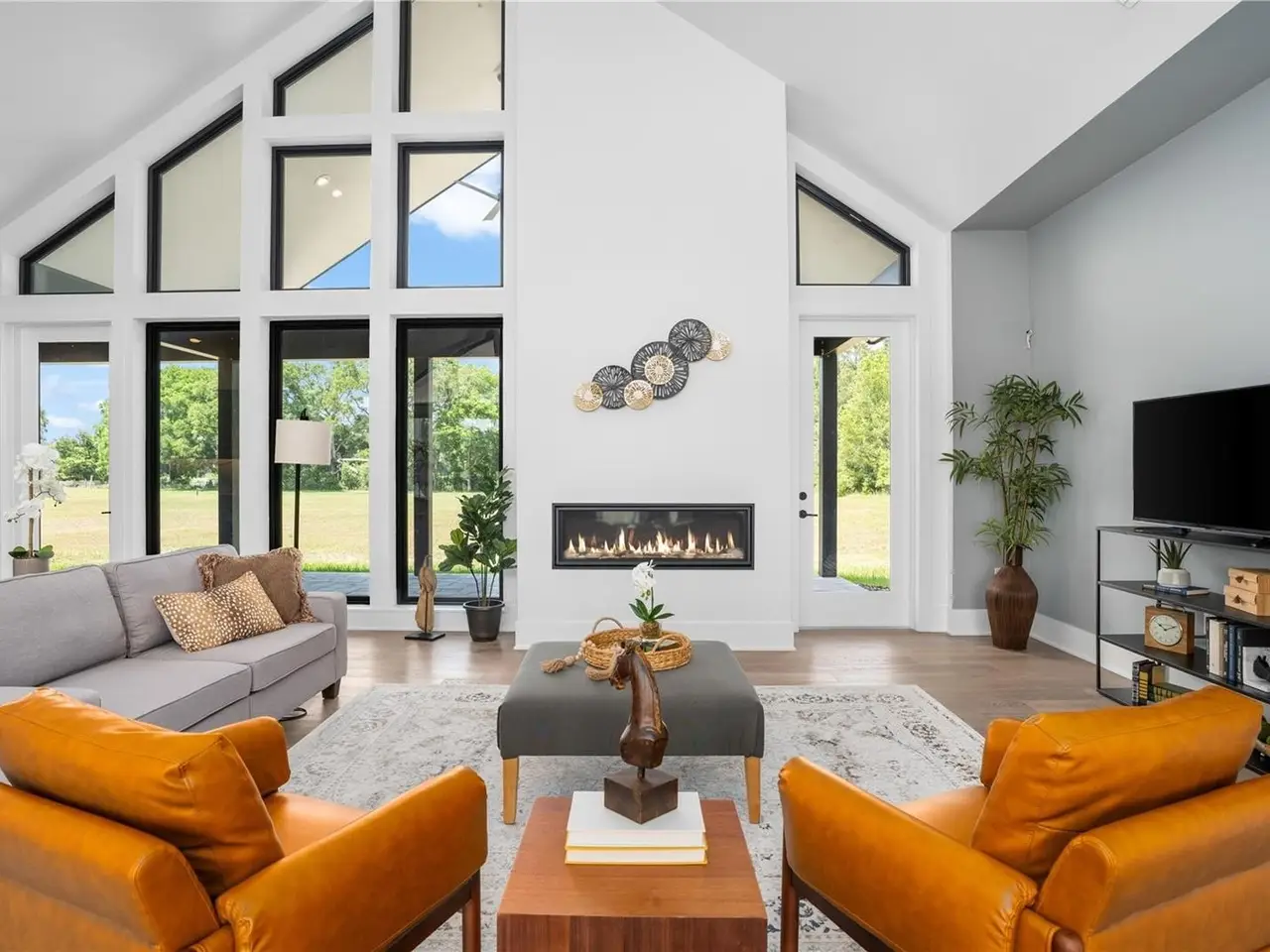 Introducing this extraordinary 5 bedroom, 4 bathroom, custom built home by Atlantic Design, situated on over 3 acres within an exclusive gated community of Dylan’s Grove. You are welcomed with a beautiful front porch that seamlessly flows into floor to ceiling premium Fibrex Composite windows, known for their superior insulation, durability, and low maintenance. Inside you will find an expansive living room with 18’ vaulted ceilings, filled with natural light, accompanied by an indoor vented 50” gas fireplace. Every detail was thoughtfully considered from the grain-matched wood cabinetry in the kitchen, custom-designed by Straw & Co Woodwork, to the upgraded Fisher and Paykel appliances, to the high-end fixtures and hardware that ties the space together. Adjacent to the kitchen is the butler’s pantry, offering additional custom cabinetry, a second sink refrigerator, dishwasher, and extra countertop space and storage. Also included in this space is a chic wet bar, perfect for crafting cocktails and hosting gatherings. This home is not only lavish but also environmentally conscious, boasting energy-efficient features throughout. From high-performance windows to efficient 18 Seer, 2 stage air conditioner systems with wi-fi thermostats, every detail has been carefully considered to minimize energy consumption without compromising comfort. The home has also been pre-wired for an alarm system, (6) gigabit ethernet ports, a wifi system, (4) exterior cameras, smart door locks, and automated lights. The exterior of the home is equally captivating, with an oversized covered lanai-already pre-wired and plumbed for a summer kitchen. The outdoor gas fireplace with stone veneer makes it a perfect sanctuary for those looking to cozy up and soak up the panoramic views. Schedule your private tour today and experience the epitome of luxury living.