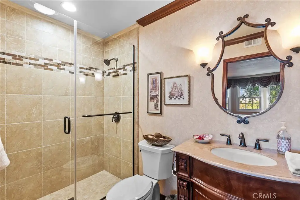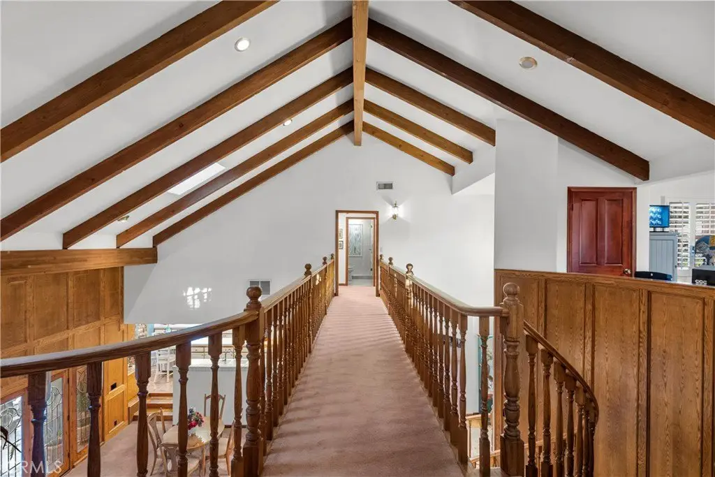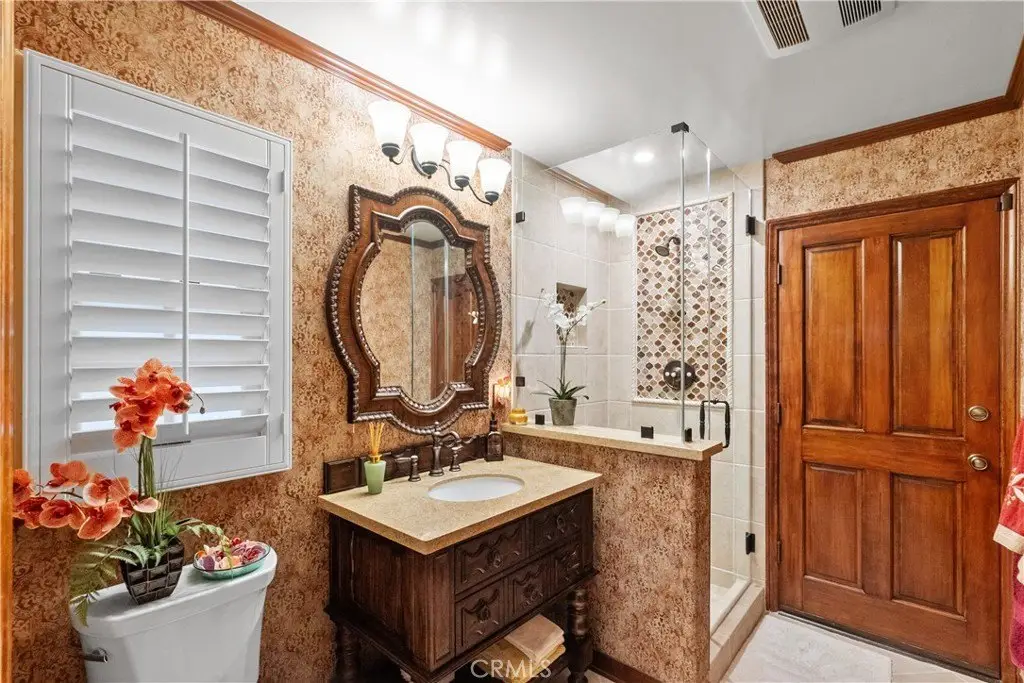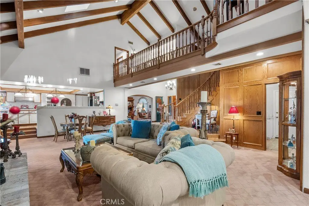 Immersa nel cuore di Santa Clarita, questa magnifica dimora in stile francese al 24537 di Peachland Ave offre 4 ampie camere da letto con soppalco e studio, 5 bagni, per un totale di 370 metri quadrati di lussuoso spazio abitativo su un lotto di 1240 metri quadrati. La proprietà presenta un esterno romantico con travi a vista e pietra del castello, completato da porte in vetro piombato che creano un ingresso maestoso. Entrando, si viene accolti dall'ampia "Great Room", uno spazio splendido impreziosito da scaffalature in mattoni e da un camino caldo e invitante. L'ampio soggiorno formale, con il suo angolo bar, si collega perfettamente alla sala da pranzo e alla cucina professionale, dove vi attendono piani di lavoro in vera porcellana e una griglia interna. La cucina si fonde armoniosamente con il soggiorno, creando uno spazio ideale sia per il relax che per l'intrattenimento. Il piano principale dispone inoltre di 2 bagni e una camera da letto, perfetti per i vostri ospiti o suoceri. L'imponente scalinata curva, con il suo ponte sospeso, conduce al soppalco al piano superiore, dove si trovano tre ampie camere da letto, tra cui una deliziosa suite principale. Questo rifugio vanta un camino rustico, un balcone privato con vista panoramica e un bagno padronale splendidamente ristrutturato con cabina doccia e una grande vasca romana con ripiani in granito. Al piano inferiore, il giardino sul retro è un'oasi di tranquillità che offre viste mozzafiato sulla Santa Clarita Valley, perfetta per riunioni all'aperto o tranquilli momenti di riflessione. La proprietà include anche un parcheggio per camper, un garage per 3 auto e un vialetto asfaltato per 6 auto, garantendo ampio spazio per veicoli e giocattoli. Questa casa è situata in posizione strategica, a pochi passi dalla Peachland Elementary School e a breve distanza in auto dalle autostrade 5 e 14, offrendo un facile accesso ai servizi e alle principali autostrade. Un vero gioiello unico nel suo genere a Santa Clarita, questa proprietà fonde design elegante, comfort moderni e viste mozzafiato per creare un'esperienza abitativa unica nel suo genere.