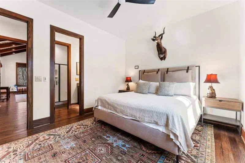 Peaceful living on acreage! Do not miss this special property...the ultimate cabin sold FURNISHED! A short drive south of Atlanta is the getaway you need in your life..."Knotty Oak" Cabin in the beautiful, private sporting community of Blalock Lakes! Recently built, this stunning home is located on over 5 acres of wooded land with serene lake views, private fenced in pickleball court, and room to roam. Being sold fully furnished, this home has a dreamy entrance with meandering drive to the most charming cabin with 3 car garage with 1 bedroom carriage house with balcony and breezeway to 5 bedroom main house. Full of natural light, this pristine home is equipped with custom, luxury chef's kitchen with wolf and subzero appliances, huge island, and views to massive family room with impressive floor to ceiling stone masonry fireplace. Screened in fireside porch off kitchen perfect for morning coffee and large open deck off living for outdoor dining and grilling on the green egg. Handsome wet bar in great room and stairs to loft area with game table perfect for poker or mahjong! Primary suite with soaking tub and door to porch on main, gracious secondary bedrooms on main and on terrace level. Terrace level boasts 3 bedrooms, bar, a cozy fireside den and screened porch that leads you to large stone patio for gathering around the fire pit. Terrace also has ATV garage. For all of your adventures, the breezeway has a large outdoor boot wash. Main level has incredible hunt room/mudrooom with several cubbies and gun cleaning table. Laundry room has ample custom cabinetry Speed Queen washer/dryer. The garage is equipped with two 220 volt plugs for EV, heated and cooled with TV, 2 half baths, and storage for event tables and chairs for large group entertaining. Truly the best house to gather, escape, entertain, and enjoy fun with family and friends. Blalock Lakes Sporting Club membership is optional, invitation only, and can be joined separately to enjoy the finest amenititi