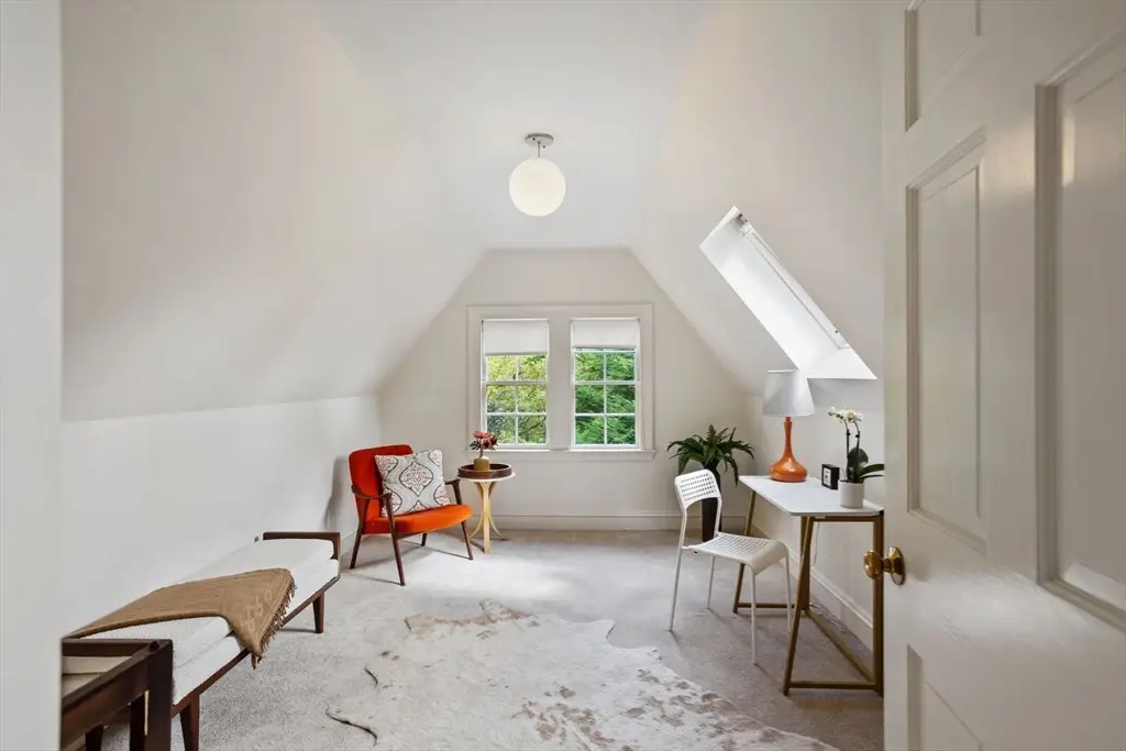 Gracious Tudor home in desired Newton location. Step-down fireplaced living room features high beamed ceilings, arched openings, oversized windows, hardwood floors and flows into an inviting sun room with floor to ceiling windows. Eat-in kitchen offers island, granite counters, bay window, plentiful cabinets and pantry. A spacious formal dining room with beamed ceiling completes this floor. Upstairs features a primary suite with private bath, 3 additional bedrooms, 2 full shared bathrooms and a bedroom/home office with separate entrance. Partially finished basement features a wood bar, play room/media room, laundry, storage and systems. 2 car garage plus parking for 4 more cars in the driveway. Driveway and garage access on Fairmont. Lush yard features a patio and is ideal for BBQ's and relaxation. Welcome home!