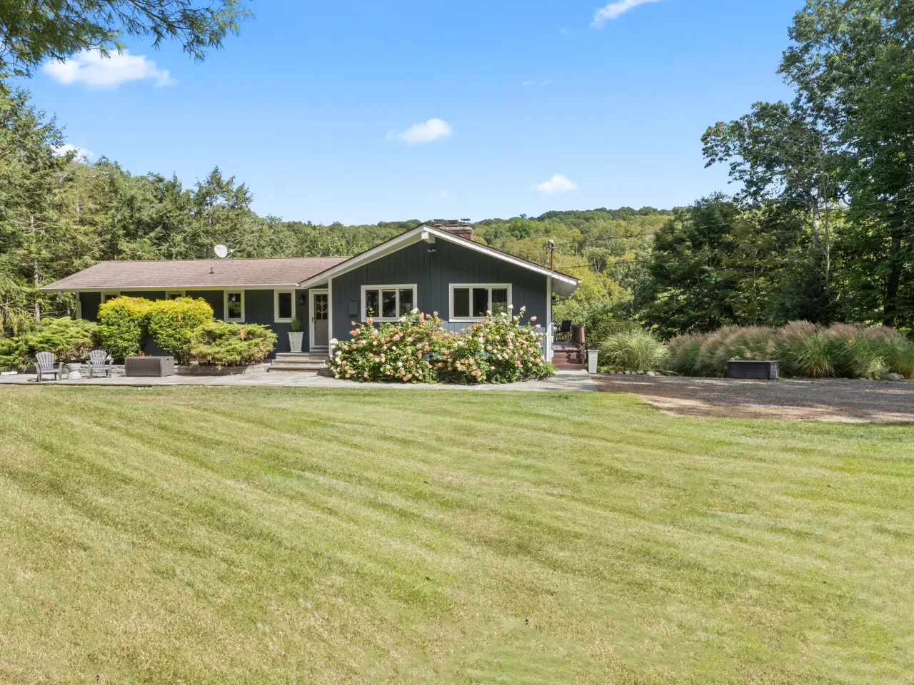 Live your Best Life at the Lake & make very day a count! Talk about multiple rooms with views from all vantage points. Experience lakeside at this beautiful contemporary ranch privately set on 2+ level acres boasting captivating views & lake frontage on Lake Lillinonah. A rare opportunity to own a direct waterfront retreat, this property features its own private 400 sqft dock-perfect for fishing/boating/jet skiing/kayaking or simply soaking in the sunshine & surrounding natural beauty. Whether making this a permanent residence or city escape, every day will feel like a vacation! The inviting main level boasts a sun filled Vaulted Great Room/frplc with walls of multiple sliders allowing natural light to cascade throughout bringing the outdoors in & opens to a mahogany deck for captivating sky, pool & lake views. The home is an entertainers dream with an easy open flr plan-the Great Rm flows into the dining area & white bright kitchen. The home lives like a 5 Bdrm with 3 Bdrms/2 trendy baths on the main level where the Primary Bdrm suite is located. The walk-out lower level showcases phenomenal additional living space consisting of 4 flexible rooms encompassing the Rec/Billiard/Media Rm & lounge area plus 2 additional rooms currently serve as Bdrms w 3rd full bath. Each living room on this level has its own sliders & views leading to an expansive 2nd mahogany deck. A private Den can also be the perfect home office. The possibilities are endless whether hosting guests or in-laws. The multi-level decks and their panoramic views is what will captivate you. As you step outside, you will feel transported to resort-like living as you appreciate this backyard oasis-enjoy the newly built heated salt water inground pool (2021) surrounded by expansive multi-level patios, stone walls & inviting fire-pit. Elevate your outdoor dining and lounging experience whether on deck, at the patio or poolside. An enormous front yard offers additional playing and lounging areas with an offside area for multiple parking. Whether you're searching for a year-round residence or the ultimate weekend get-away, this home offers the perfect blend of privacy, comfort & resort-style amenities to enhance one's best life in a highly coveted lakefront community nestled amongst other fine waterfront homes all within Newtown yet minutes to Brookfield center and neighboring Bridgewater. Enjoy Newtown's Main Street including the Rec Center at Fairfield Hills, Newtown Arts festival, Halloween on Main & the Christmas Holiday Walk, numerous dining options & recreational activities. Easy commuting to Interstate 84/Routes 684. Check out the Video for a sneak peak of what life could be like here!