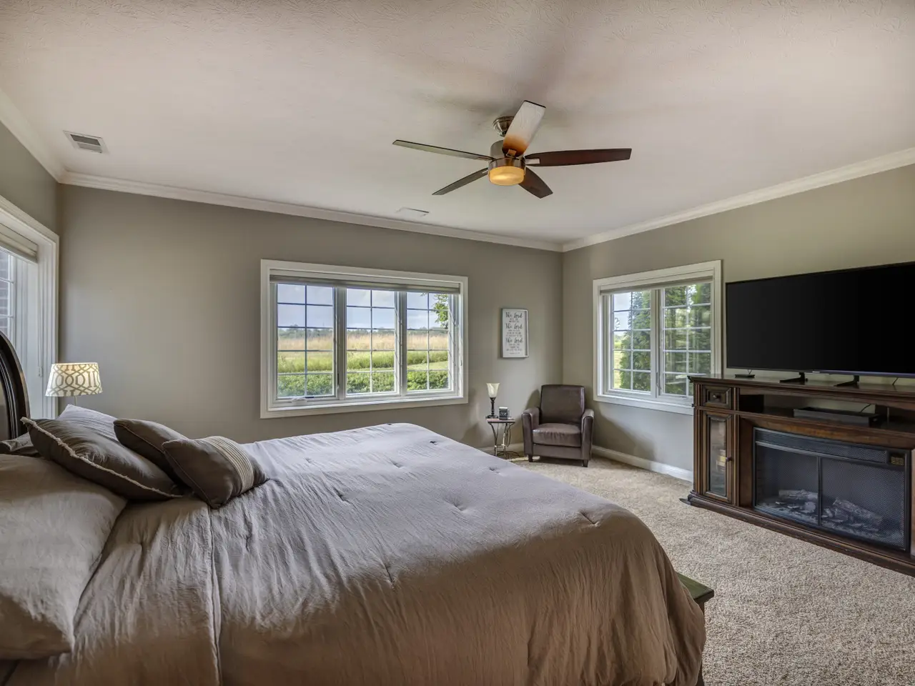 Welcome to your dream home on the 8th green of the prestigious Sagamore Golf Course. This stunning single-family residence offers the perfect blend of elegance, space, and comfort - both inside and out. A brick-accented concrete driveway leads to a spacious 3-car garage. Inside, the main level features beautiful hardwood floors, soaring cathedral ceilings, and a dual-sided fireplace between the living room and breakfast room. A formal dining room greets you near the front entrance - perfect for hosting gatherings and holidays - while a bright sunroom offers extra space to relax or entertain. The expansive deck, accessible from the sunroom, living room, and primary bedroom, offers sweeping golf course views and the perfect setting for morning coffee or evening wine. The main floor includes a spacious primary suite with a spa-like bathroom, featuring a double vanity, soaking tub, and separate shower. Two additional bedrooms and a full bath are also located on the main level, along with a conveniently placed half bath for guests and a laundry room with easy garage access. The fully finished walkout basement adds incredible versatility, offering a large great room, dedicated theater room, a full bedroom and bathroom, two bonus rooms ideal for a home office, gym, or hobby space, and a spacious utility/storage area. Just outside the basement walkout, tucked beneath the deck, you'll find a private hot tub - perfect for relaxing after a long day. And don't miss the finished attic above the garage, currently used as a guest suite, providing even more flexible living space. New roof and water heater in 2022, and new furnace in 2023. With refined finishes, an entertainer's layout, and one of the best views in the neighborhood, this is Sagamore living at its finest.