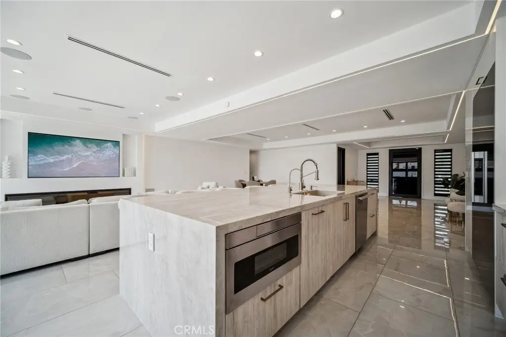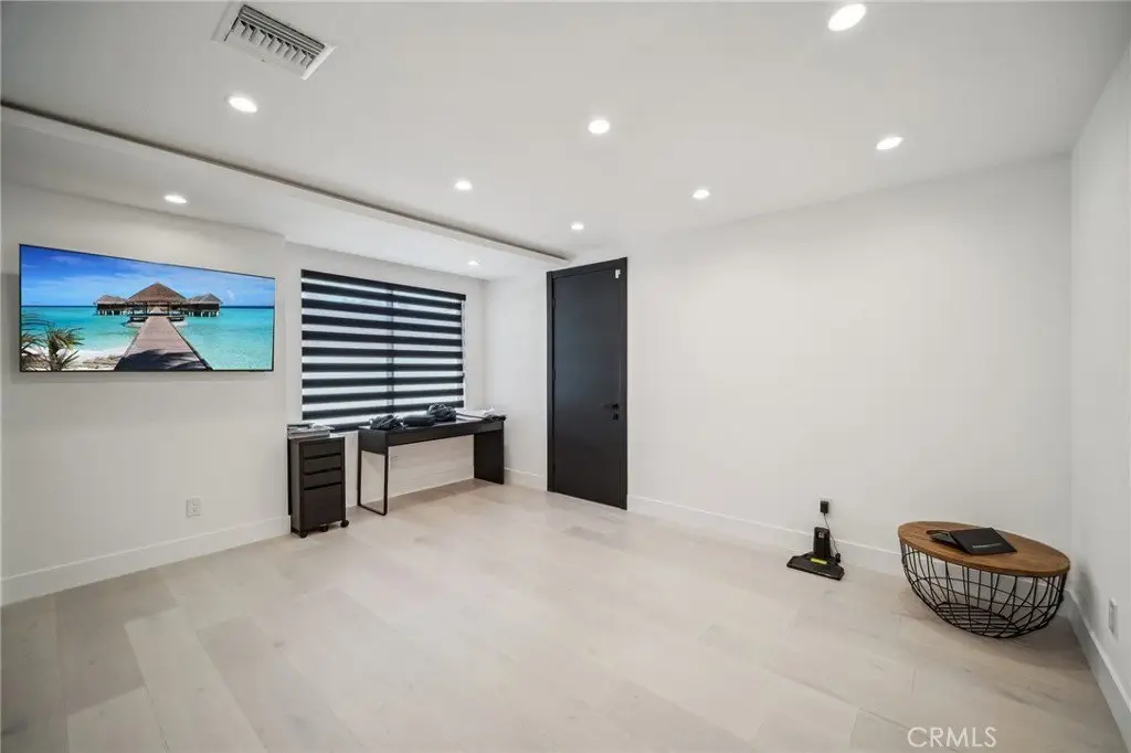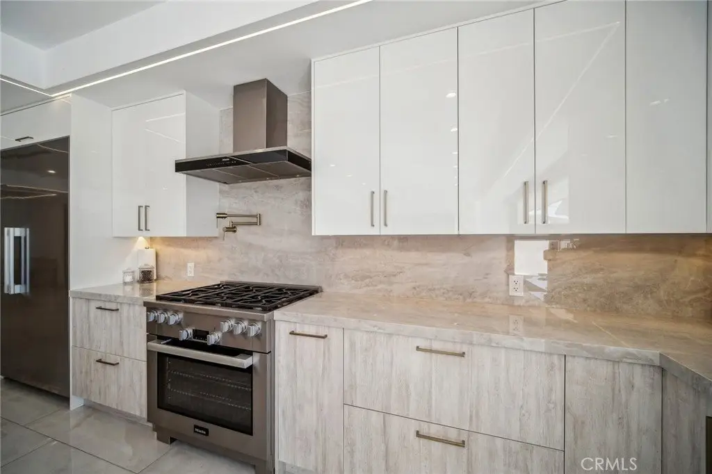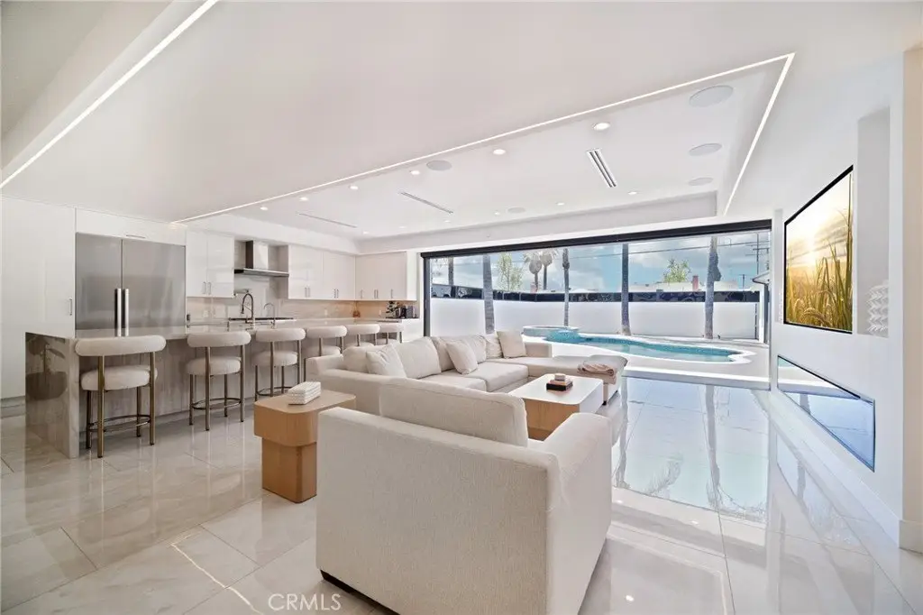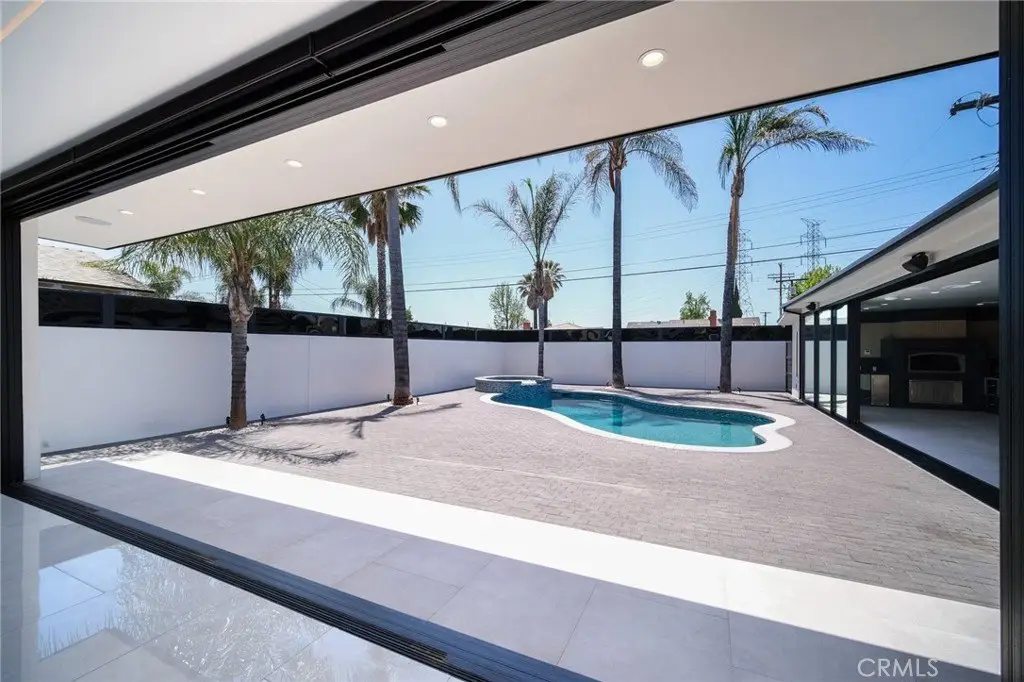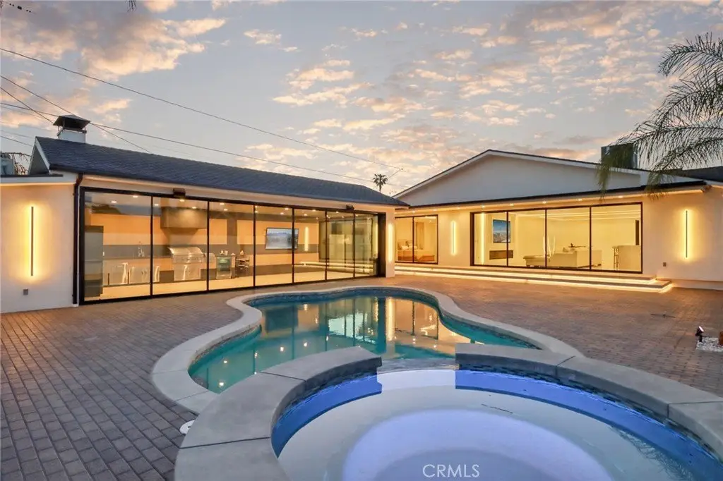 Questa audace tenuta moderna in stile europeo a North Hollywood è un vero e proprio esempio di architettura. Dotata di cancello privato e rifinita in nitidi toni bianco e nero con tegole presidenziali, offre un impatto immediato. Una grande porta a battente in vetro introduce in un ampio open space di 215 metri quadrati, definito da soffitti a cassettoni personalizzati, illuminazione ambientale a strisce LED, faretti a incasso, pavimenti in piastrelle di design e bocchette di ventilazione a sfioro minimaliste con altoparlanti integrati, che fondono perfettamente innovazione e design. La cucina dello chef, realizzata su misura, presenta sofisticati mobili bicolore, un'imponente isola a cascata di 3,6 metri con ampi vani portaoggetti integrati, piani di lavoro Taj Mahal, un frigorifero in acciaio inox integrato, elettrodomestici Miele e un'anta a scomparsa per un flusso continuo. Il soggiorno è incentrato su una parete con camino astratto, mensole personalizzate e un camino elettrico. La parete si estende oltre la sua cornice con dettagli LED retroilluminati, creando un effetto visivo sorprendente e un centrotavola indimenticabile. La suite principale offre un rifugio privato, completo di cabina armadio personalizzata, bagno in stile spa e porte scorrevoli in vetro a tutta altezza che si aprono su un rigoglioso giardino sul retro. Tre camere da letto e tre bagni, di cui due en-suite e un bagno di servizio dal design curato, sono rifiniti con caldi pavimenti in legno e piastrelle di design in tutta la struttura. Il garage rifinito comprende un bagno di servizio e una discreta zona lavanderia. Sia il giardino anteriore che quello posteriore sono meticolosamente progettati con pavimentazioni moderne di grande formato, palme mature e un giardino lussureggiante, il tutto racchiuso da una recinzione dalle linee pulite per una maggiore privacy. Il giardino sul retro evoca un'atmosfera da resort, con una piscina scintillante, una spa sopraelevata e una pool house di 56 metri quadrati progettata per versatilità e stile. A caratterizzare lo spazio è un imponente sistema di porte a scomparsa a 7 pannelli, alti oltre 9 metri, che si impacchettano completamente all'ultimo pannello, creando una transizione fluida tra interno ed esterno. La pool house presenta inoltre piastrelle in stile bambù nei toni del nero e del grigio, un'area barbecue personalizzata e completamente attrezzata, un bagno completo e un deposito dedicato per gli oggetti essenziali da esterno. Inoltre, la proprietà include nuovissimi impianti di aria condizionata e riscaldamento, due scaldabagni istantanei Rinnai a gas, uno per la residenza principale e uno per la pool house, e un tetto di nuova installazione. Raffinata, contemporanea e costruita per stupire, questa casa ridefinisce il concetto di vita moderna europea nel cuore di North Hollywood.