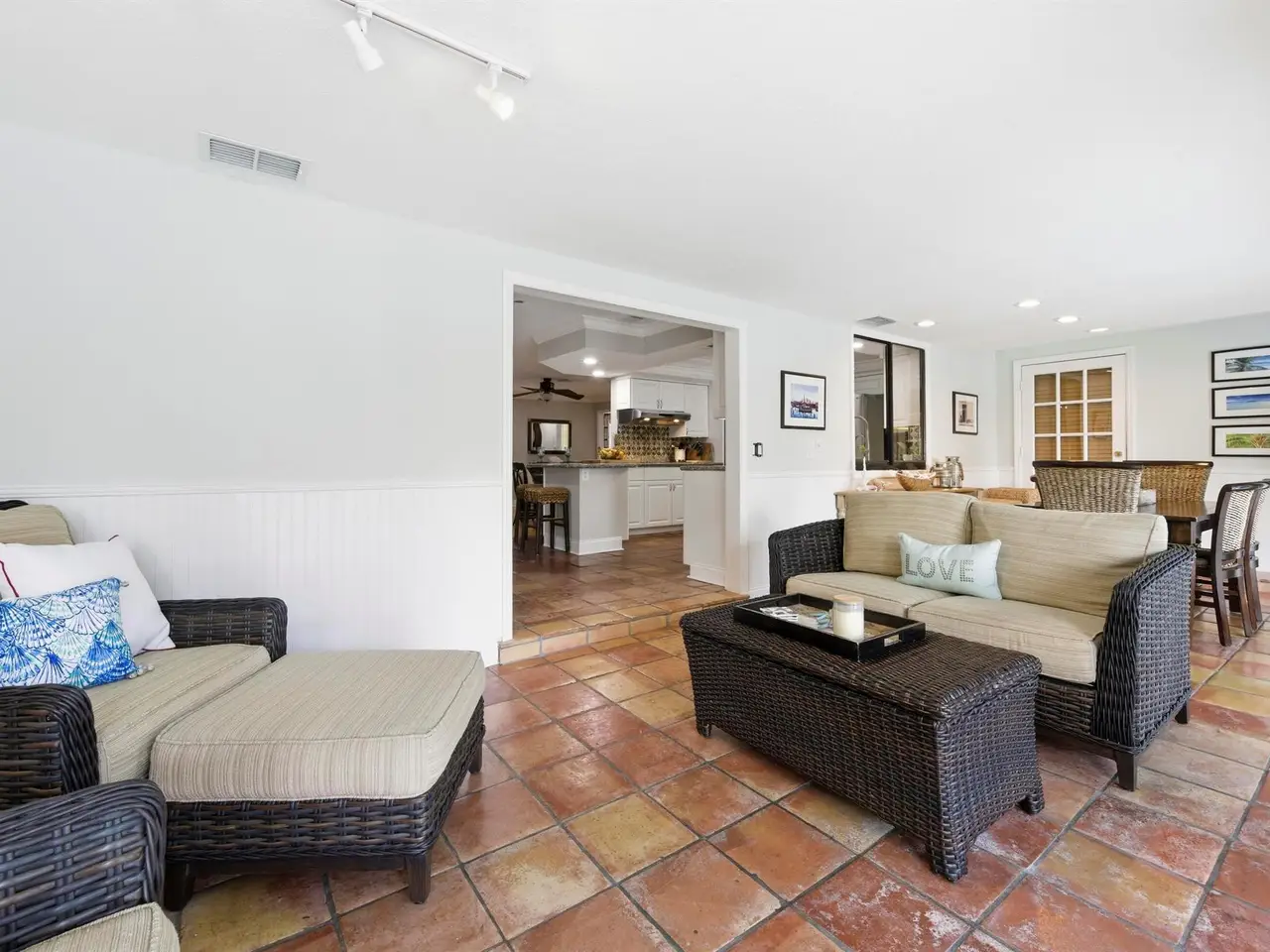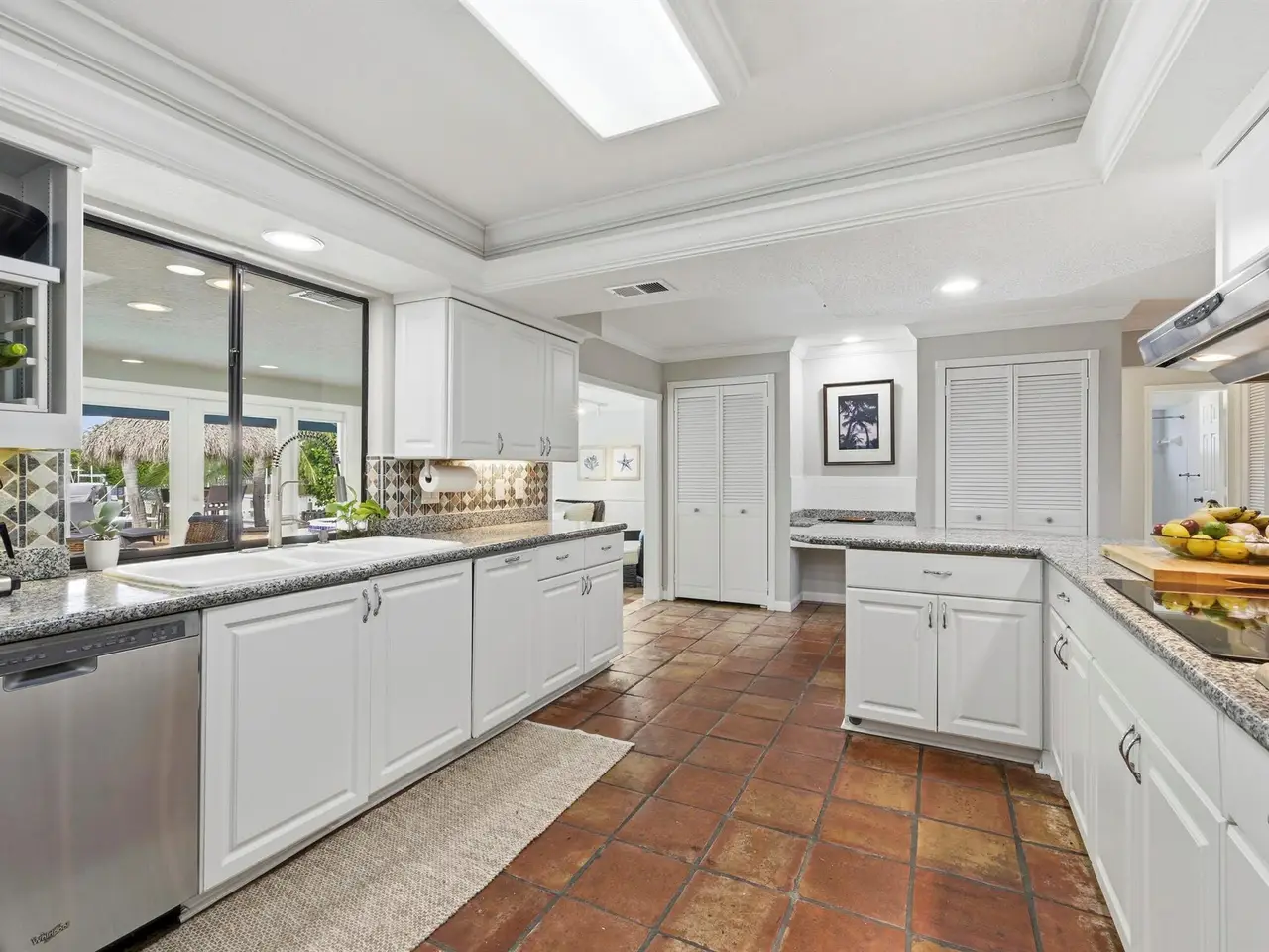 Located in the desirable Village of North Palm Beach, this waterfront residence blends coastal appeal with thoughtful design. The property features partial impact-rated windows, a metal roof, and a private dock with fish-cleaning station, offering direct canal access with fixed bridges leading to the Intracoastal Waterway and Atlantic Ocean. Inside, the home welcomes you with engineered hardwood flooring, recessed lighting, and crown molding throughout the main living areas. The open dining area connects to a well-appointed kitchen featuring granite countertops, a full tile backsplash, stainless-steel appliances. A breakfast nook and enclosed Florida room provide inviting spaces for dining or relaxation, complemented by a built-in cabinetry and reach in pantry.