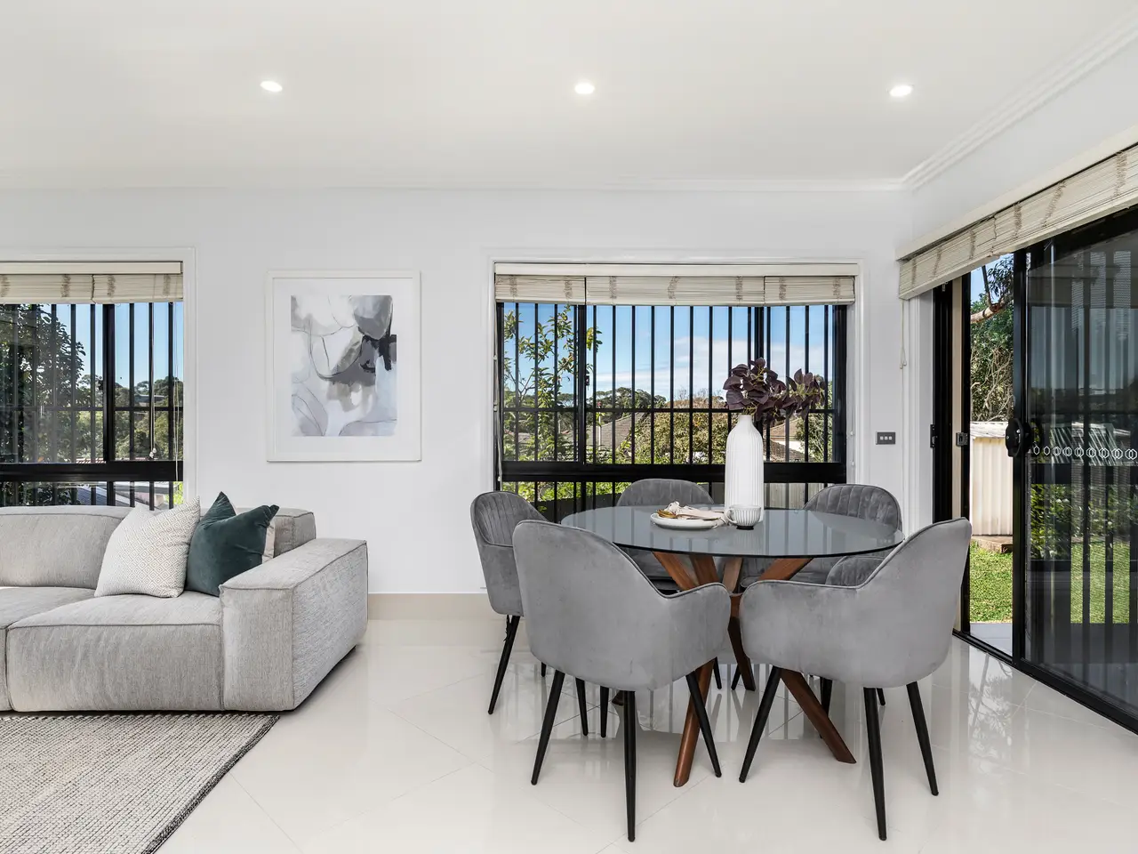 Designed and built to a luxury spec in a tranquil setting, this substantial dual-level home provides a lifestyle as elegant as it is effortless. With its perfect fusion of functionality and flair, it's just the right size for a larger family – flaunting three generous living areas, impressive master quarters, and picturesque backyard entertaining with views to the Chatswood skyline. Technology and comfort features abound, while prime proximity to quality schools, local cafes, city transport and Macquarie Centre delivers all the convenience you desire. – Grand double-height portico entrance with A/V intercom at the door – Low-maintenance tile and timber floors, glamorous lighting selections – Gourmet stone kitchen complete with island and 900mm Ilve gas range – Spacious master suite with private balcony; family bathroom with spa – Additional shower and W/C, Daikin ducted air, solar power, DLUG – Walk to restaurants and Lachlan Square, approx. 1km to Metro station – North Ryde Oval + RSL Club and great bush tracks on the doorstep