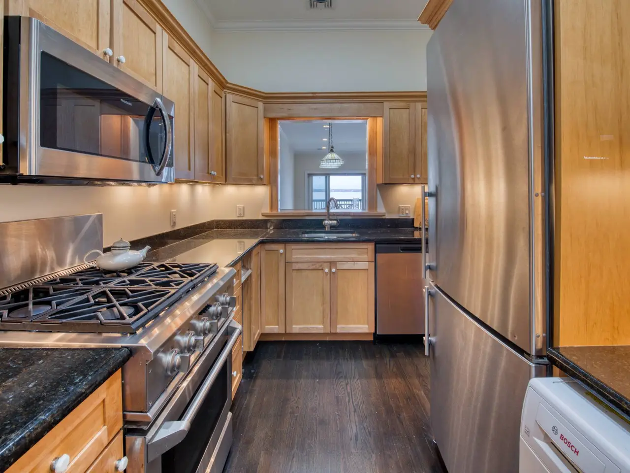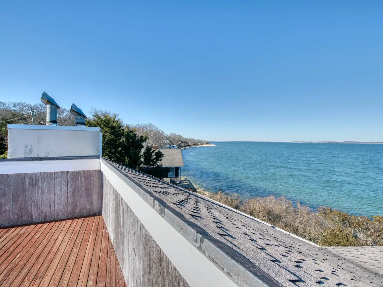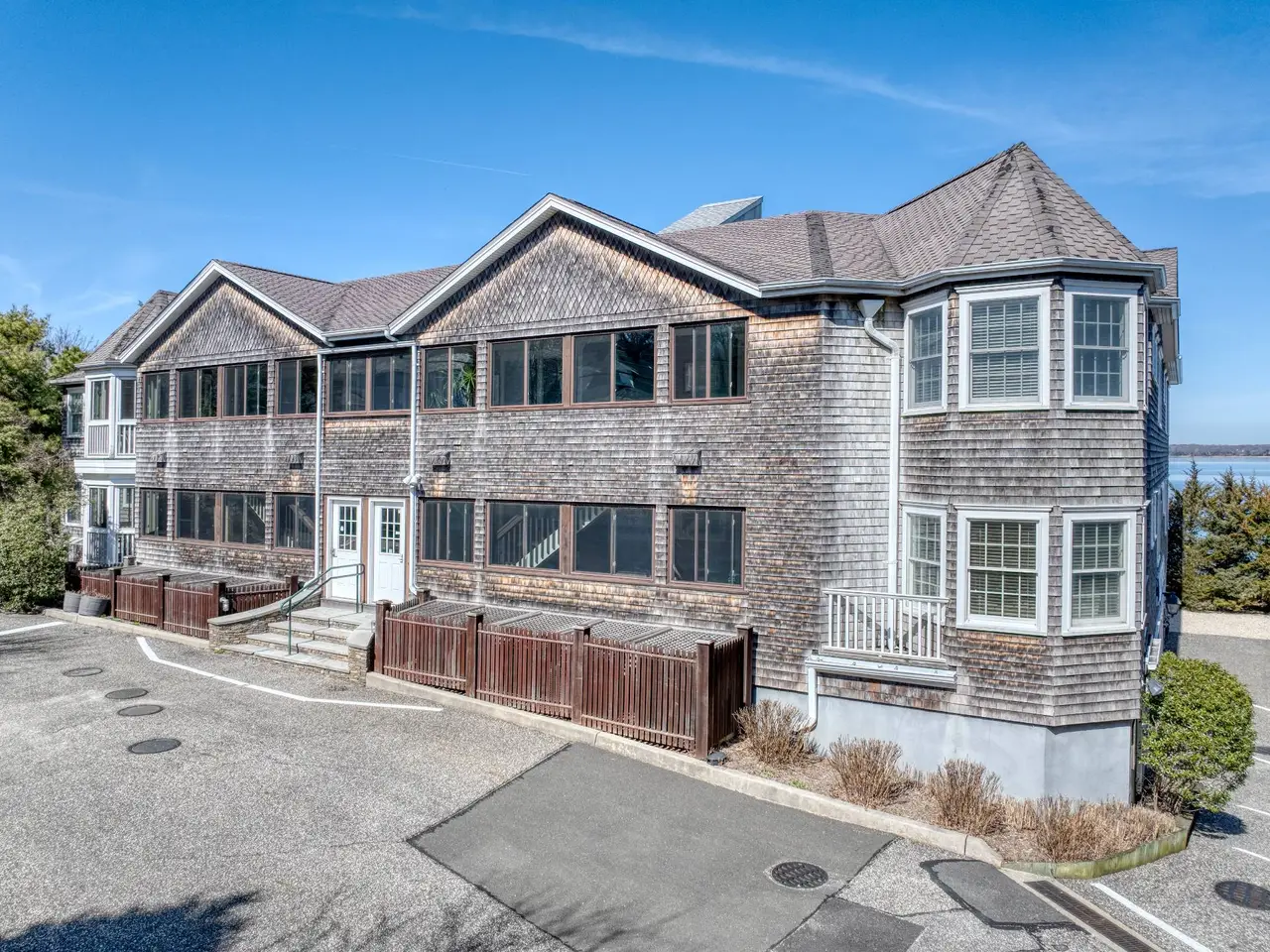 What could be more inviting than sitting on your expansive waterside deck overlooking Long Beach and spectacular sunsets? Spend your summer or year round in this expansive 2,100 square foot, three bedroom, three and a half bath waterside condo. Spectacular water views are not to be missed. Amenities include a lower level indoor parking garage, golf simulator, small gym, elevator access up to the second floor condo unit and down to the lower level. Use the deep water dock, lie on the beach or enjoy the fresh air while meeting friends on Foster Memorial Long Beach for a bonfire or dip in the bay, one of the best Southampton town beaches in the Hamptons with two lifeguard stations. Fabulous area for kite surfing, kayaking, yoga or quietly reading a book. A rooftop deck has soaring views of Noyack Bay, Noyac Harbor and surrounding, Shelter Island, North Fork, Southold and Greenport. Only a few minutes from Sag Harbor Village, five minutes to Bridgehampton and not far from pristine ocean beaches.
