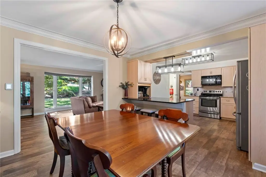 Nestled at the edge of a nature park with gorgeous wooded views, is this 5 bedroom hidden gem in a sought-after neighborhood. Classic center-hall entry welcomes you into a light-filled living room with Luxury Vinyl floors & a bay window. The dining room opens to an updated kitchen featuring a peninsula w/granite & quartz counters, SS appliances & abundant cabinets. An enormous familyroom is ideal for entertaining; gather at the wet bar or relax by the brick fireplace. Step outside to the treetop deck overlooking Falling Springs trails, or enjoy private outdoor gatherings on the large brick patio. Upstairs, 5 bedrooms with hardwood floors, including a roomy primary suite with mirrored closets & full bath. Lower level offers a bright laundry area & a versatile bonus roomC/B?B=perfect as an office, gameroom, or 6th bedroomC/B?B=with sliding doors to the patio. This smart home is loaded with technology & thoughtful updates to keep you comfortable & secure + it provides generous storage throughout.