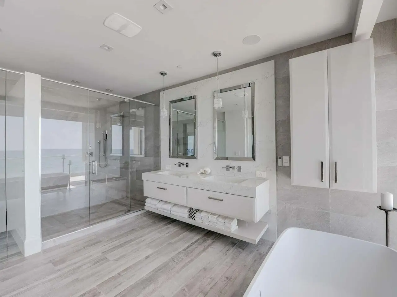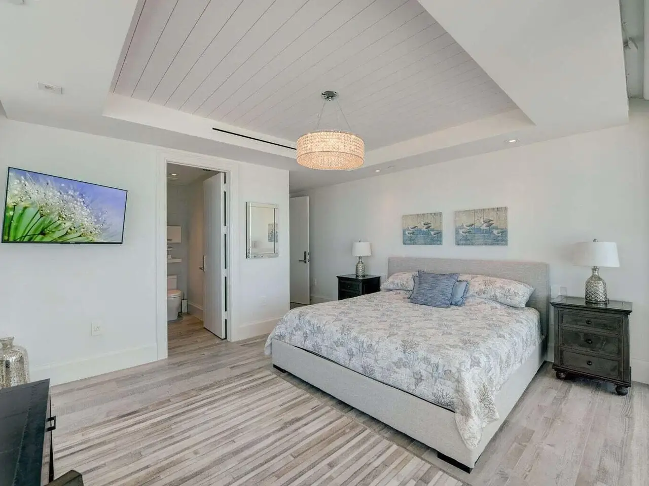 Ocean Ridge townhome, perched directly on the sand, showcases a sunny deck and an expansive wraparound balcony perfect for catching the sunrise. Designed with a sophisticated beach-chic flair, every room frames sweeping views of golden coastline and shimmering aquamarine waters. The main level boasts a light-filled open-concept living space. Downstairs rooms make ideal guest retreats, while the top-level primary suite, with its panoramic oceanfront perch, sits in the sunny southeast corner.
