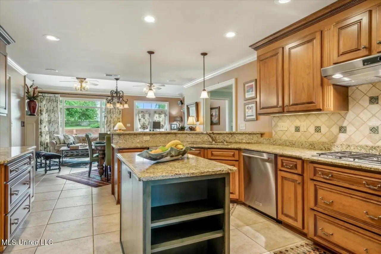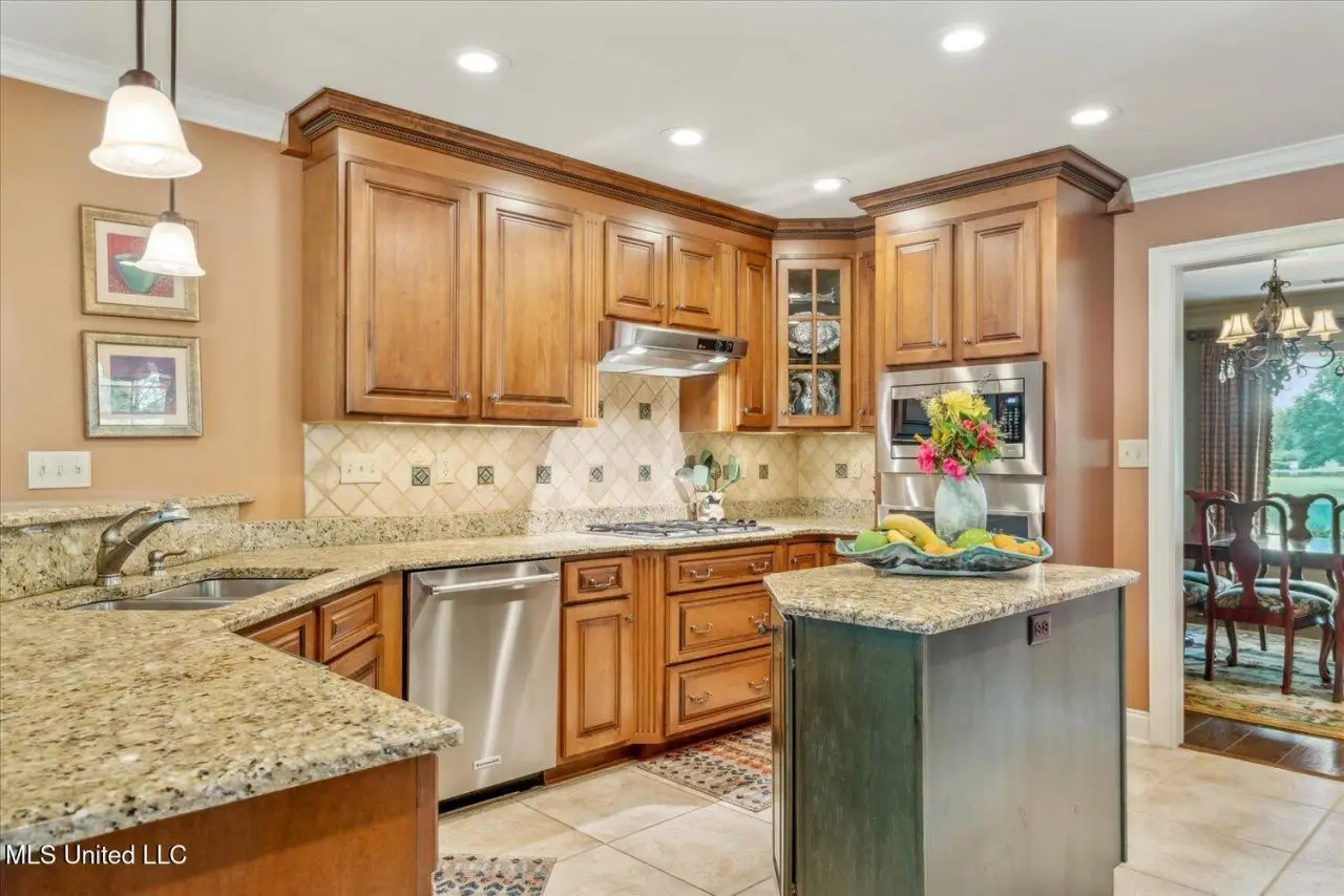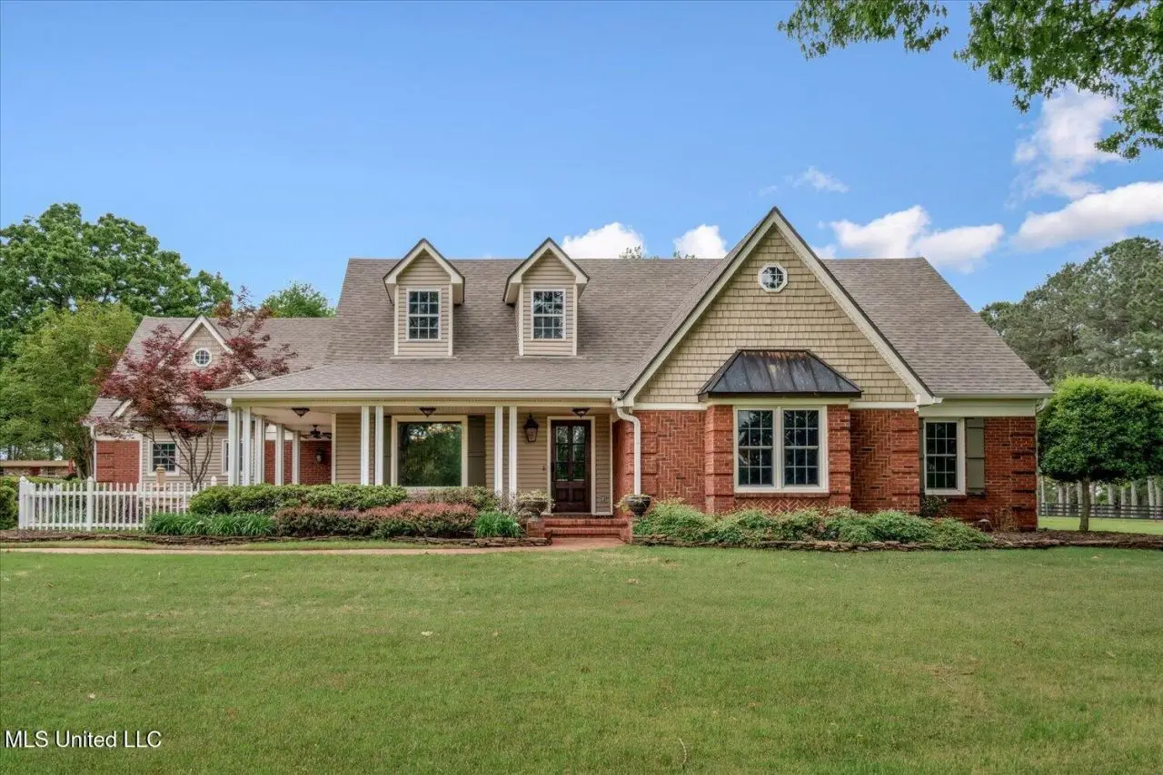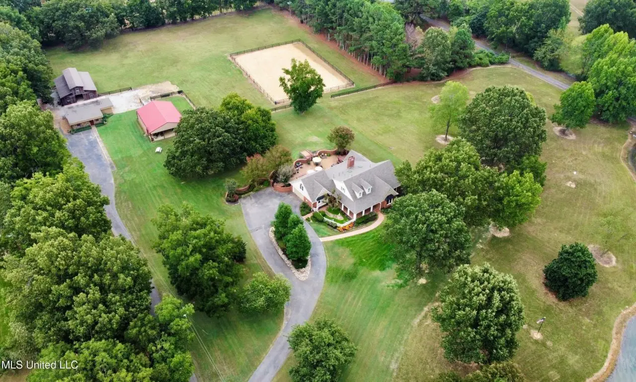 Mini Ranch located in the heart of Olive Branch. This estate offers 13.62 +/- acres, remote controlled electric security gate with keypad, 2 barns, fenced and crossed fenced, arena, approx. 3-acre lake, RV/horse trailer parking with designated 30-amp electrical service and waste station; stone ancillary building with heat, air, separate security system, two barns including one metal barn and one wood barn, tractor/equipment garage/workshop with additional lean-to, winding blacktop drive with alarm. Main home offers 6 bedrooms, 4 full baths and one half bath. Gourmet kitchen with granite countertops, tile flooring and backsplash, under cabinet lighting, decor glass cabinet door with accent lighting, island, stainless steel appliances, gas cook top, built-in oven and microwave, vent hood, Kitchen Aid built-in refrigerator, trash compactor, pantry with sliding drawers, free standing ice maker, open to 23.3x15.2 family room featuring built-ins with adjustable shelving and gun cabinet and fireplace with gas logs. Formal dining room with hardwood flooring, 22.5x18 great room with fireplace and gas logs, 15.10x15.5 primary bedroom with accent crown lighting, unbelievable primary closet measures 15.3x12 with island and custom shelving, salon bath with walk-in shower, separate soaker tub, two vanities - one with knee space, plus two more walk in closets. Also on the main level are 14.6x10.11 bedroom #2, 13.11x12.9 bedroom #3, and 2-1/2 baths. Upstairs leads to bedroom #4 measuring 15.6x10, with a private ensuite full bath and 5th 17.9x13.4 bedroom ideal for exercise or crafts. Access via a second staircase to bedroom #6, 17.8x16.1, with its own ensuite full bath and walk-in closet. Other amenities include laundry room with cabinets, bonus area to hold 2 refrigerators and/or freezer, pocket doors, two sets of permanent stairs with oak treads, 3 bedrooms down, 2-1/2 baths down. Spacious coat closet, multiple light switch dimmers, dual security systems for main home and stone building, butler's pantry with coffee bar and wine cooler. New architectural shingle roof installed fall 2024, brick and vinyl siding for low exterior maintenance. This home, built in 1988, was completely remodeled in 2003 and meticulously maintained... ask for details! Metal Horse Barn is 36x48 with four 12x12 stalls, tack/feed room with cabinetry, fly spray system, wash room with fiberglass walls, cold and hot water supply, insulated, stall mats, concrete aisle, gutters, sliding front and rear doors, large covered front porch, built-in fire pit, plus 90'x100' arena with sand. Wood Barn is 36x50 with tack/feed room, water and electricity. This barn makes a great loafing shed area and hay storage. Stone Ancillary Building: great for hobbies and has a half bath, closet, window AC and propane wall heat that services front of building. Includes attached garage with work benches, overhead door and lean-to on rear. All of this situated on 13.62+/- beautiful acres with approximately 3-acre lake loaded with fish, fenced and cross fenced (majority vinyl fencing), scattered mature trees, designated area irrigation system, accent exterior lighting with timers, attached double garage with epoxy coating floors and pine tongue and grove ceiling, gutters, huge patio with built-in serving bar, wrap around porch. Call now and bring on the horses! Owner agent. https://youtu.be/blmG57c9mcI